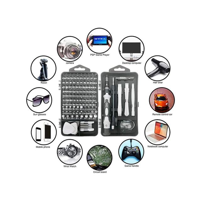 This complete set includes 119 precision tools designed for home electronics like TVs, air conditioners, refrigerators, fans, and more. It's also perfect for delicate devices like smartphones, laptops, cameras, and watches — no more searching for the right tool.
