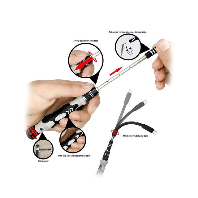 Includes both flexible and solid extension shafts for narrow angles, plus anti-static tweezers and non-slip silicone handles for safe and comfortable use anytime.