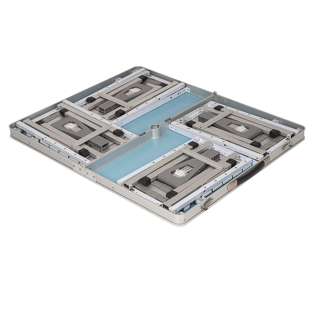 Durable helpers: This Camping furniture may be used for indoor or outdoor use – the heat and water-resistant on the table. The table has a solid aluminum frame. The size of the plate is approx. 96 x 79 cm The Seat Height is 42 cm and the table height is 67 cm when folded up. The aluminum surface is easy to clean.