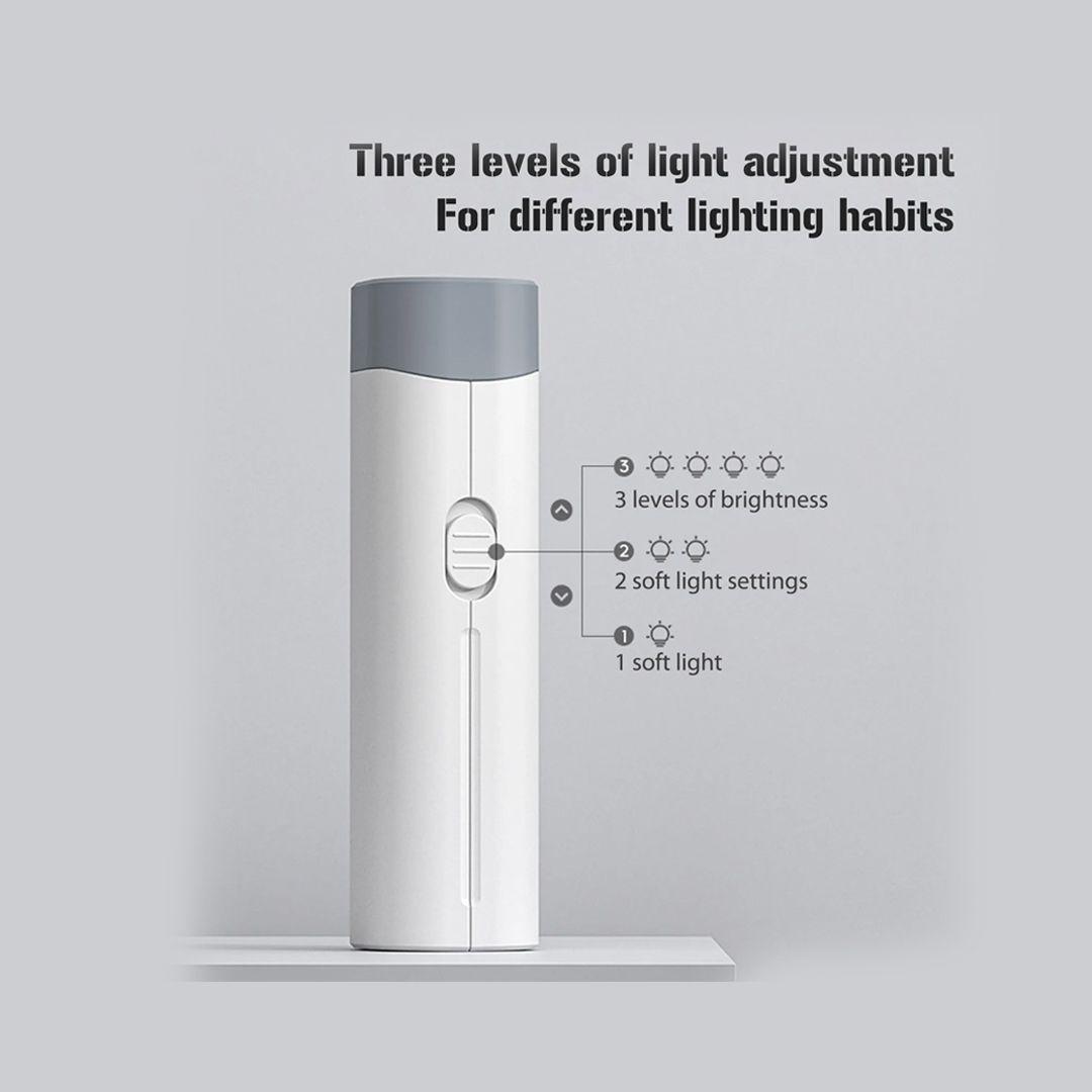 𝗥𝗲𝗰𝗵𝗮𝗿𝗴𝗲𝗮𝗯𝗹𝗲 & 𝗣𝗼𝘄𝗲𝗿 𝗕𝗮𝗻𝗸: Built-in 1200mA battery, the night light can function 3-5 hours continuously without turning off, after being fully charged for 1-2 hours. Equipped with a USB output, the lamp can also be used as a temporary power bank for emergency use.