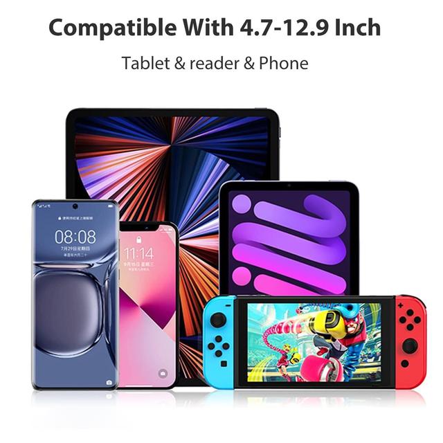 Supports phones and tablets from 4.7" to 12.9" — perfect for iPhone, iPad, Samsung Galaxy, and more.