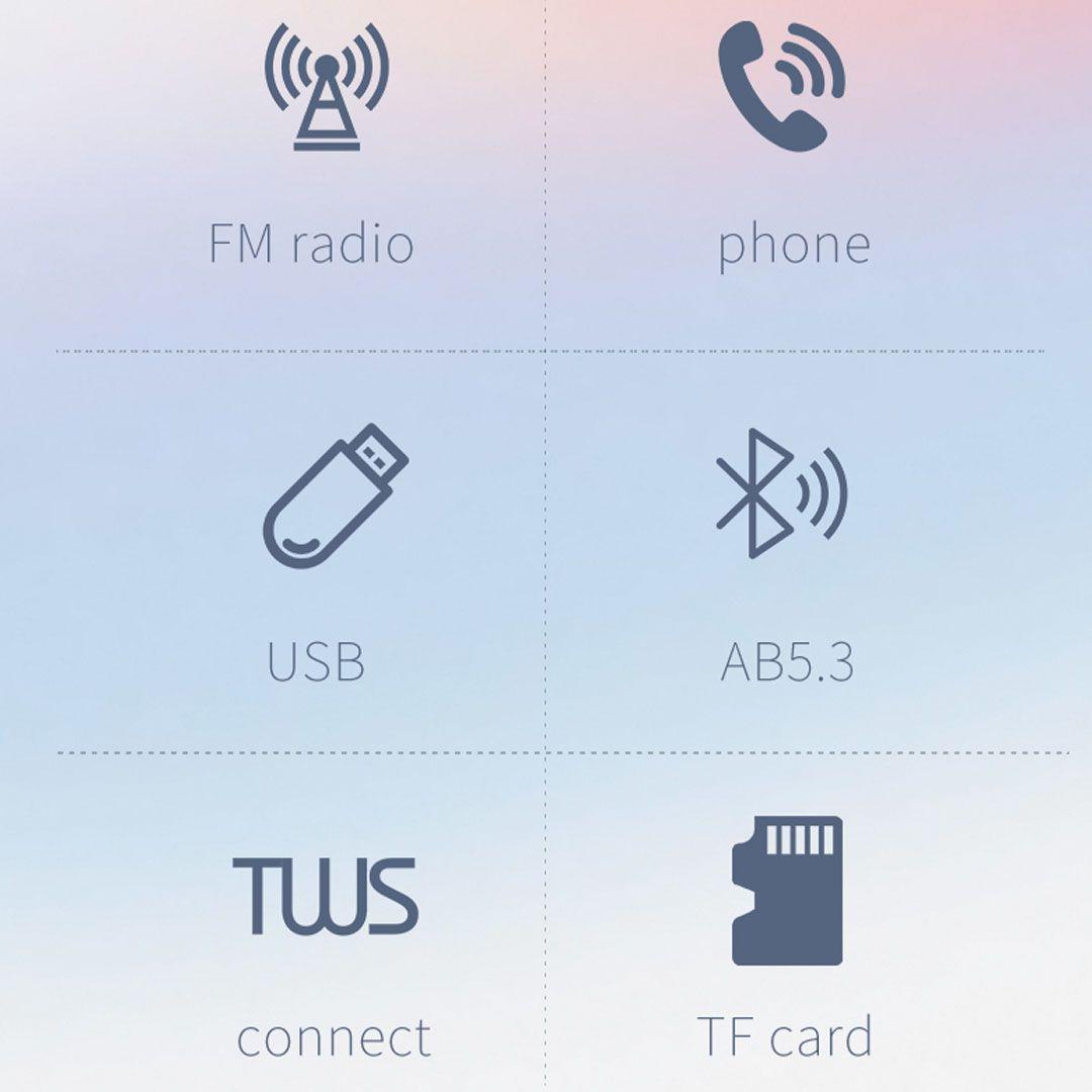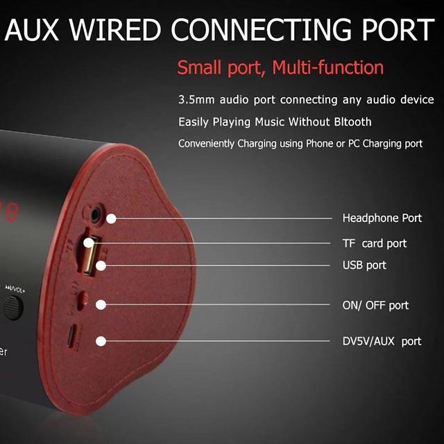 - Connections: USB, FM, Bluetooth, TF, AUX
