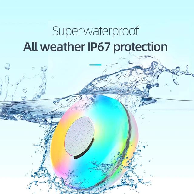 TWS Bluetooth Floating Pool Speaker with Colorful Lights IPX7 Waterproof