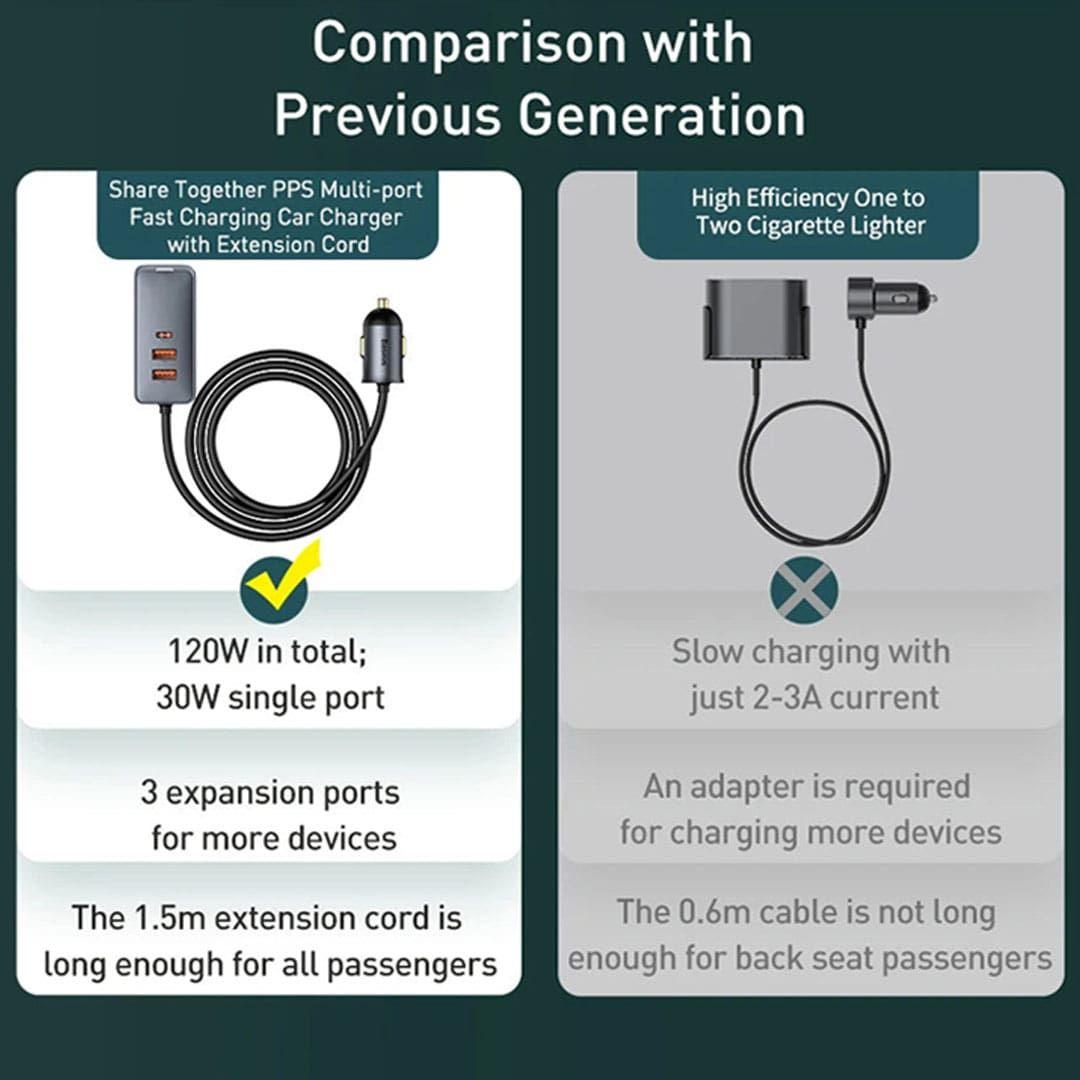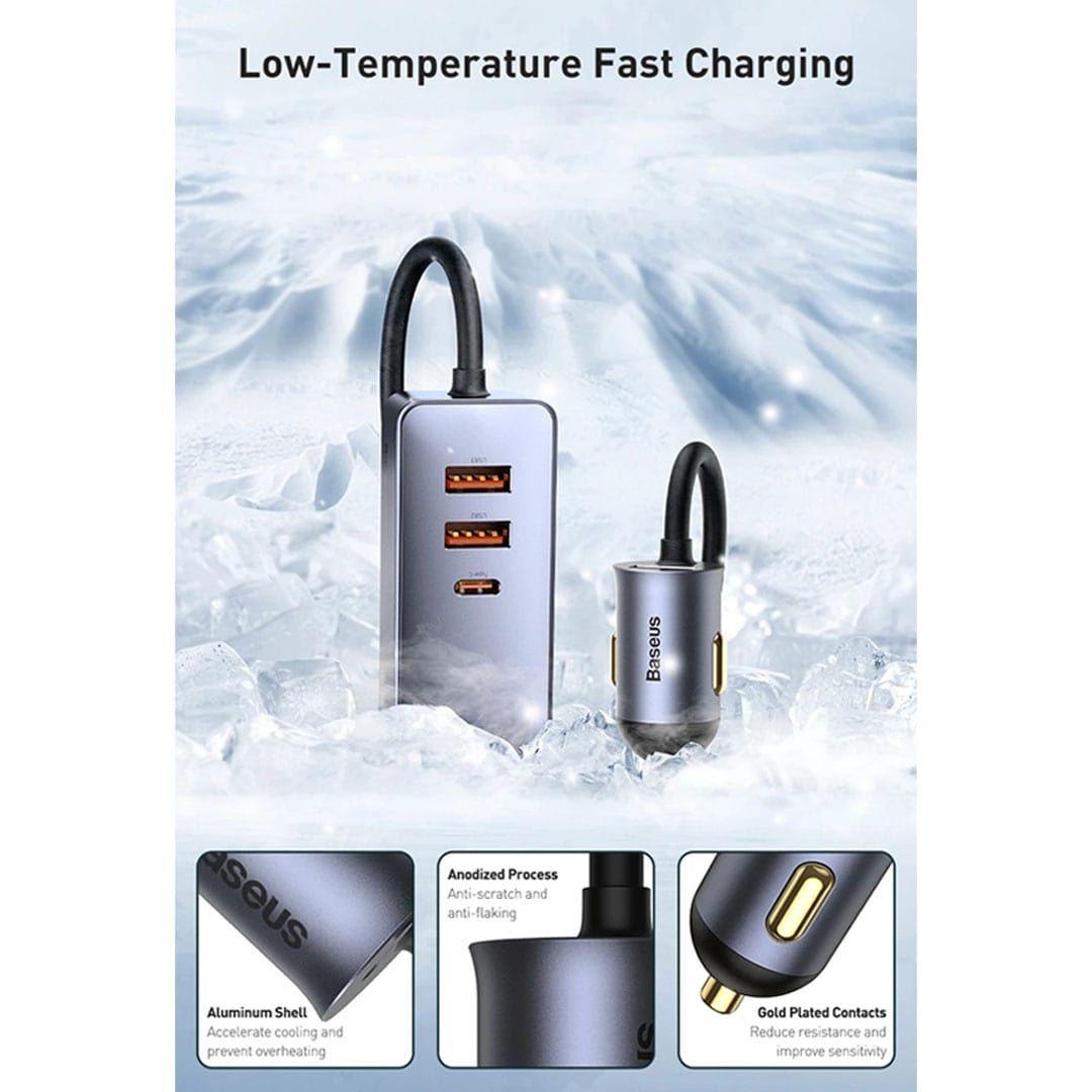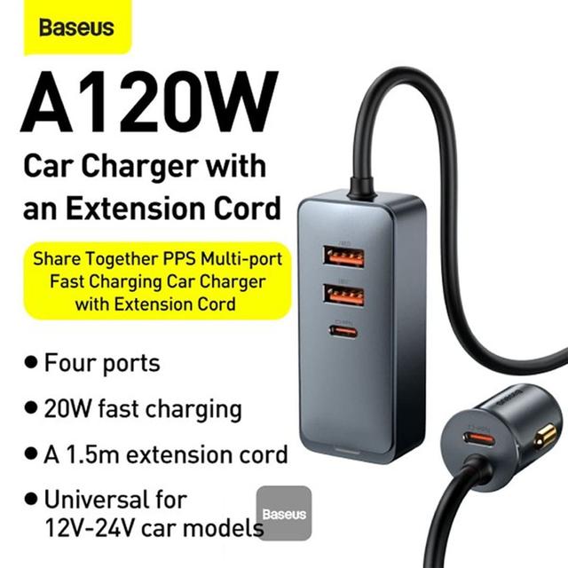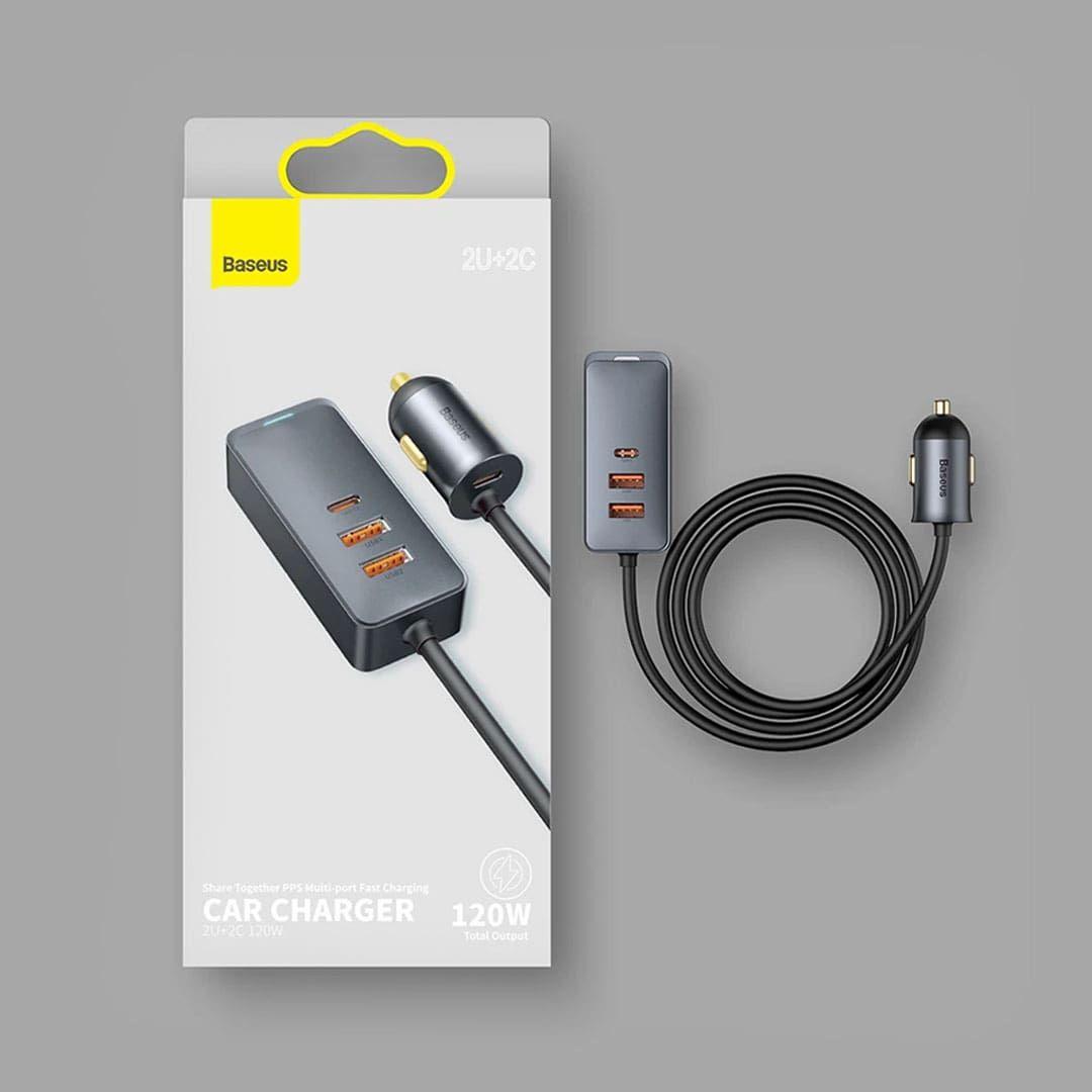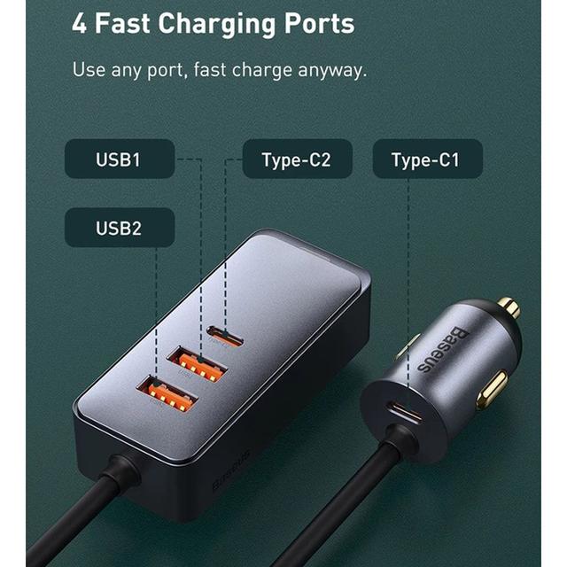 Baseus 120W Car Charger with 2 USB Ports and 2 Type C Ports