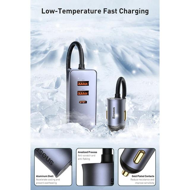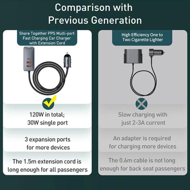 Long cord: Allows you to easily and conveniently access charging ports anywhere inside the car.