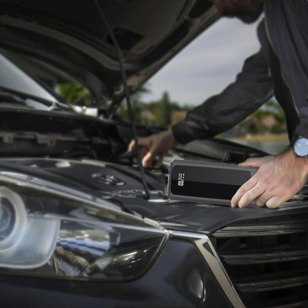 The power bank is equipped with a car battery charger, allowing you to start the vehicle if the battery is discharged.