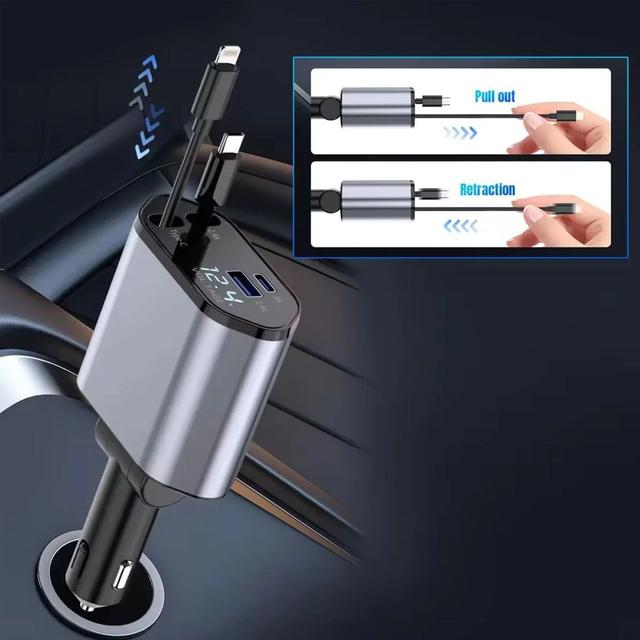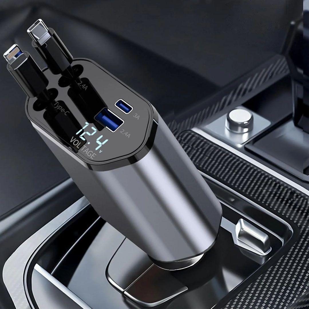 Say Goodbye to Cable Clutter… Charge All Your Devices Easily with the 4-in-1 Retractable Car Charger!