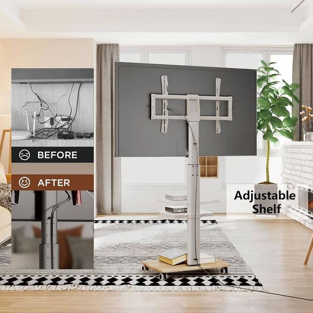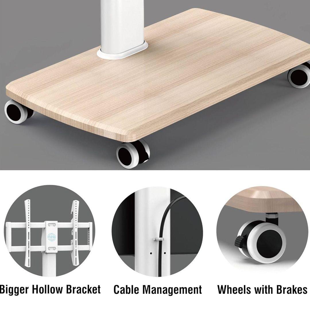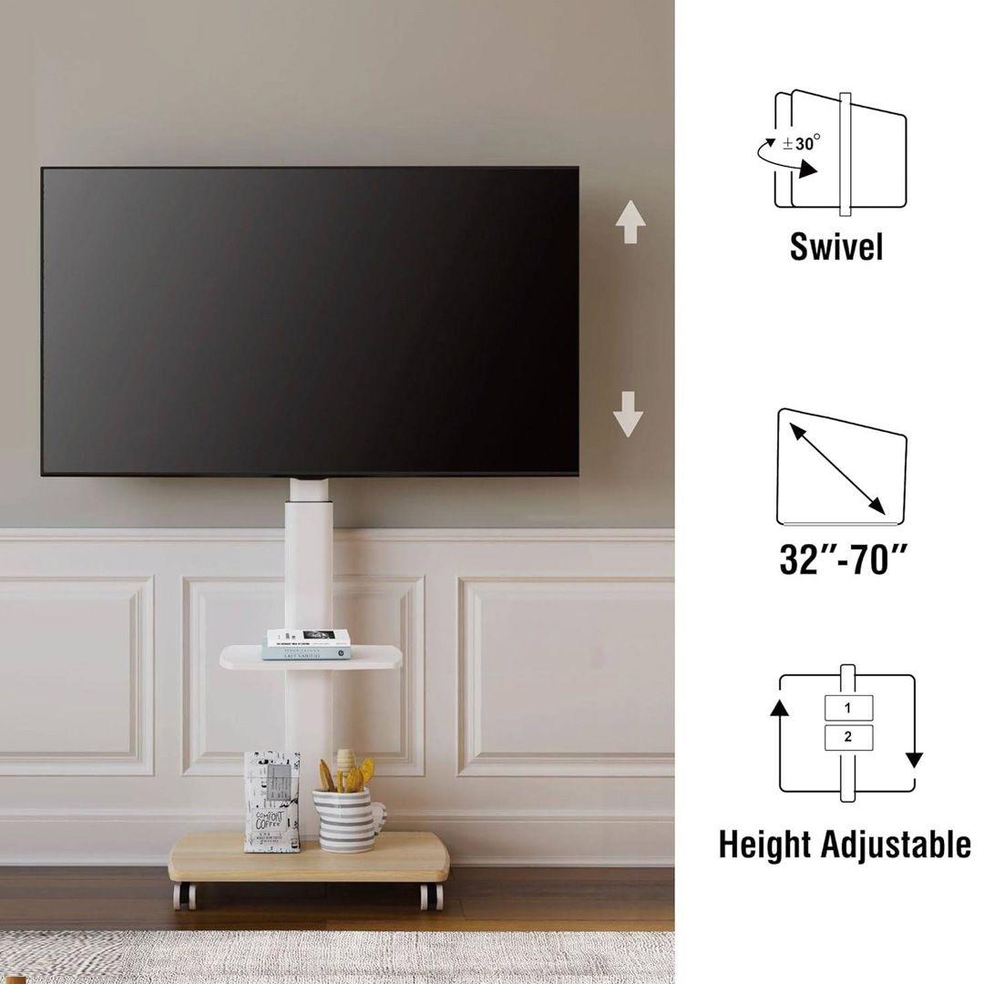 Space Saving with Shelf - Mobile TV stand has flexible plastic shelve to hold your essential A/V components, cable box, DVD player or game systems.