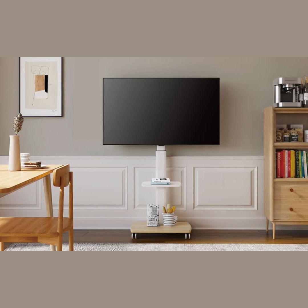 TV Stand with Wheels - Thanks to the wheels, this floor TV stand can be moved anywhere easily.