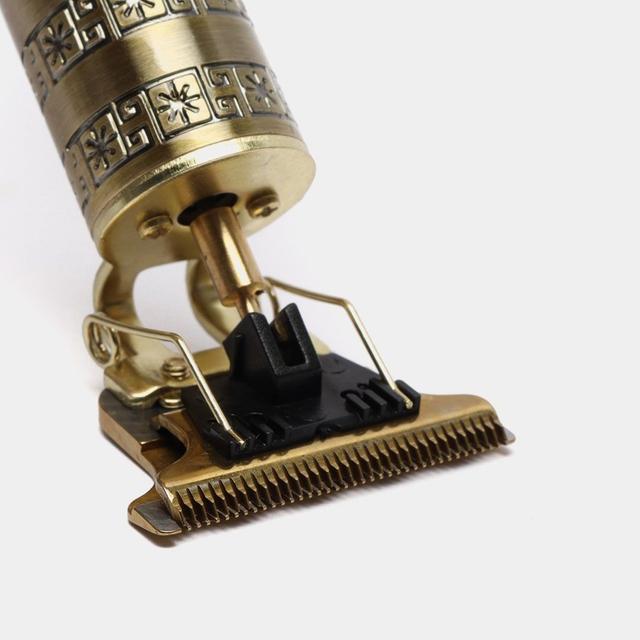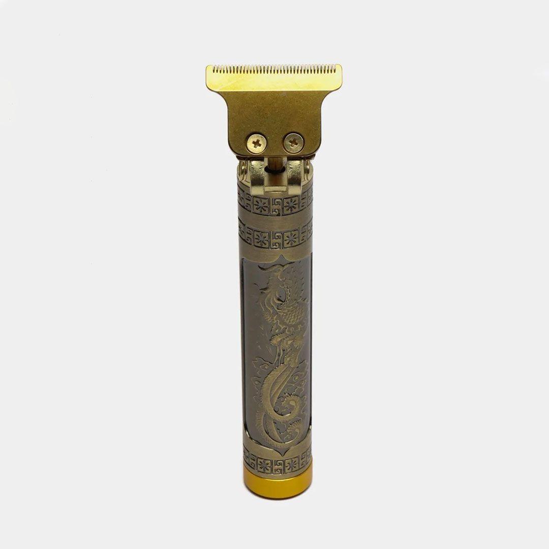Beard trimmer for men, a true work of art in terms of exterior design. The ornate engravings on the gold cover add vintage charm.