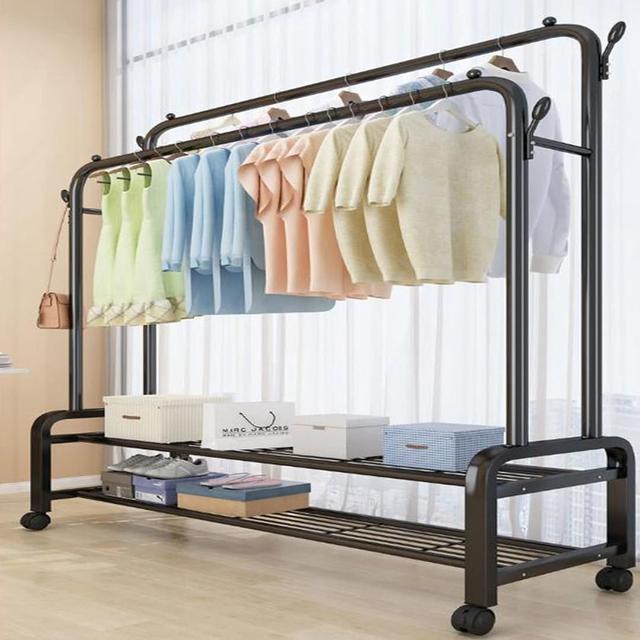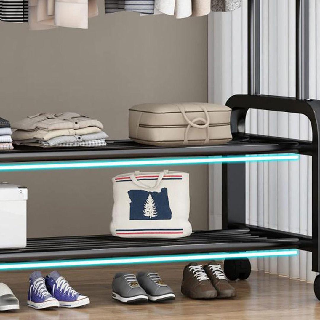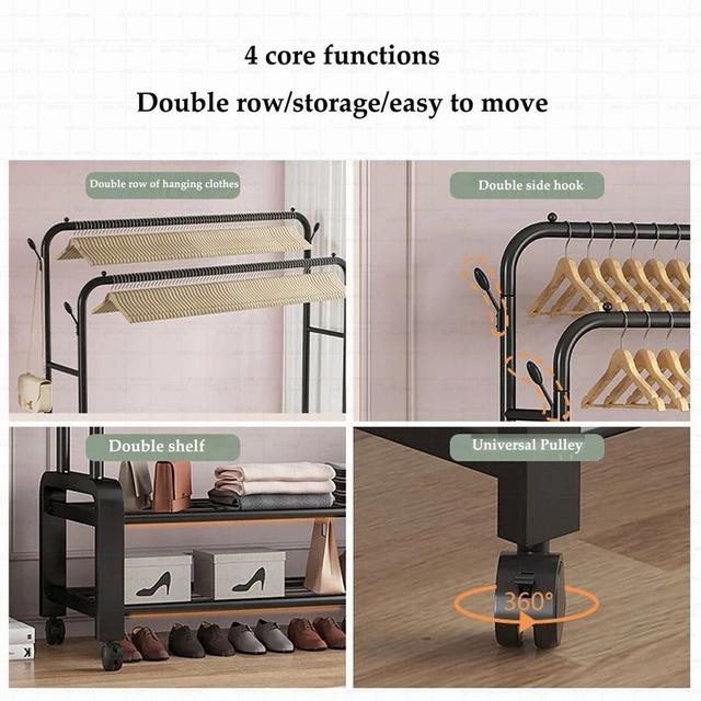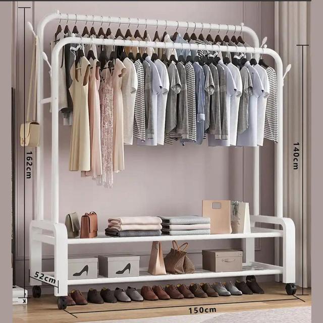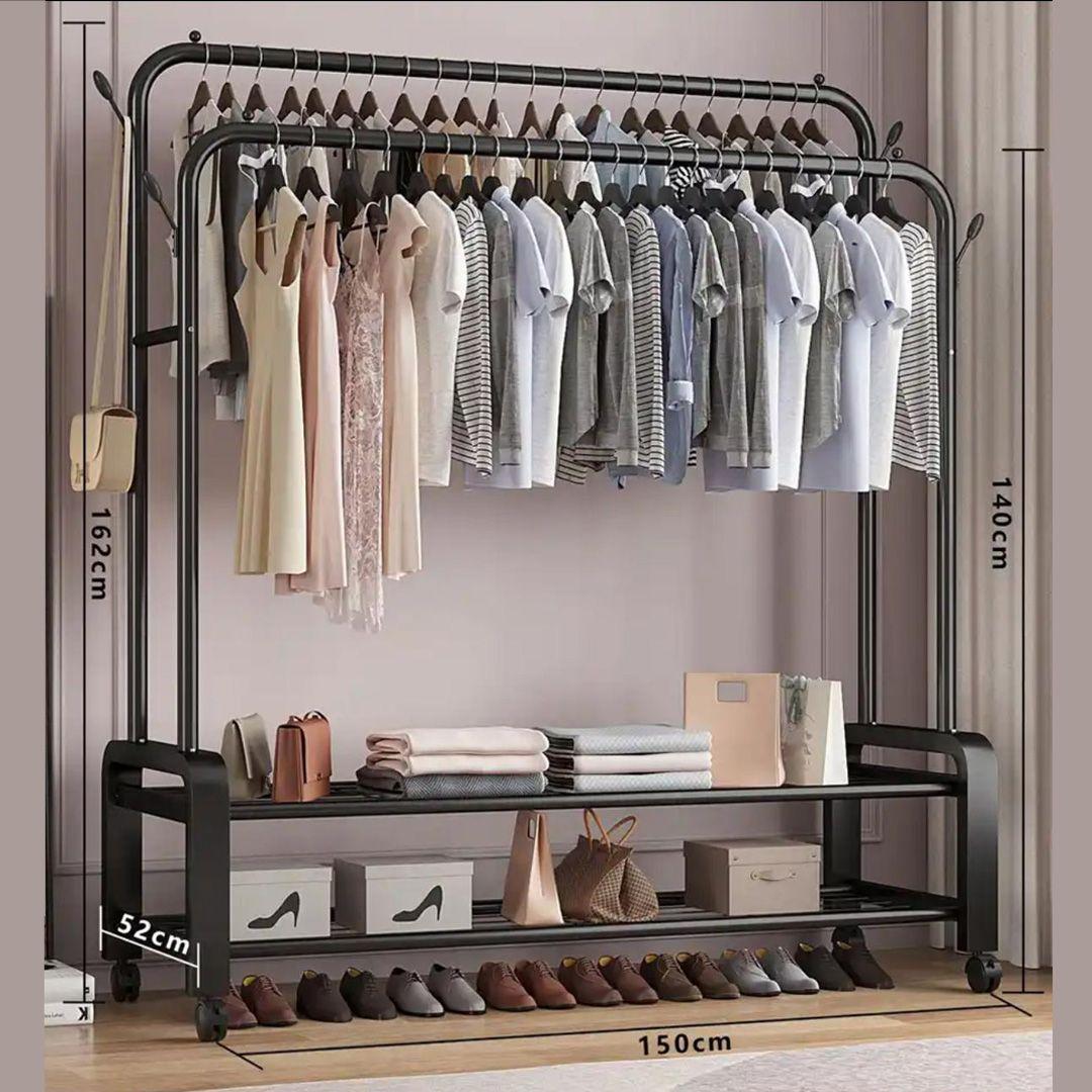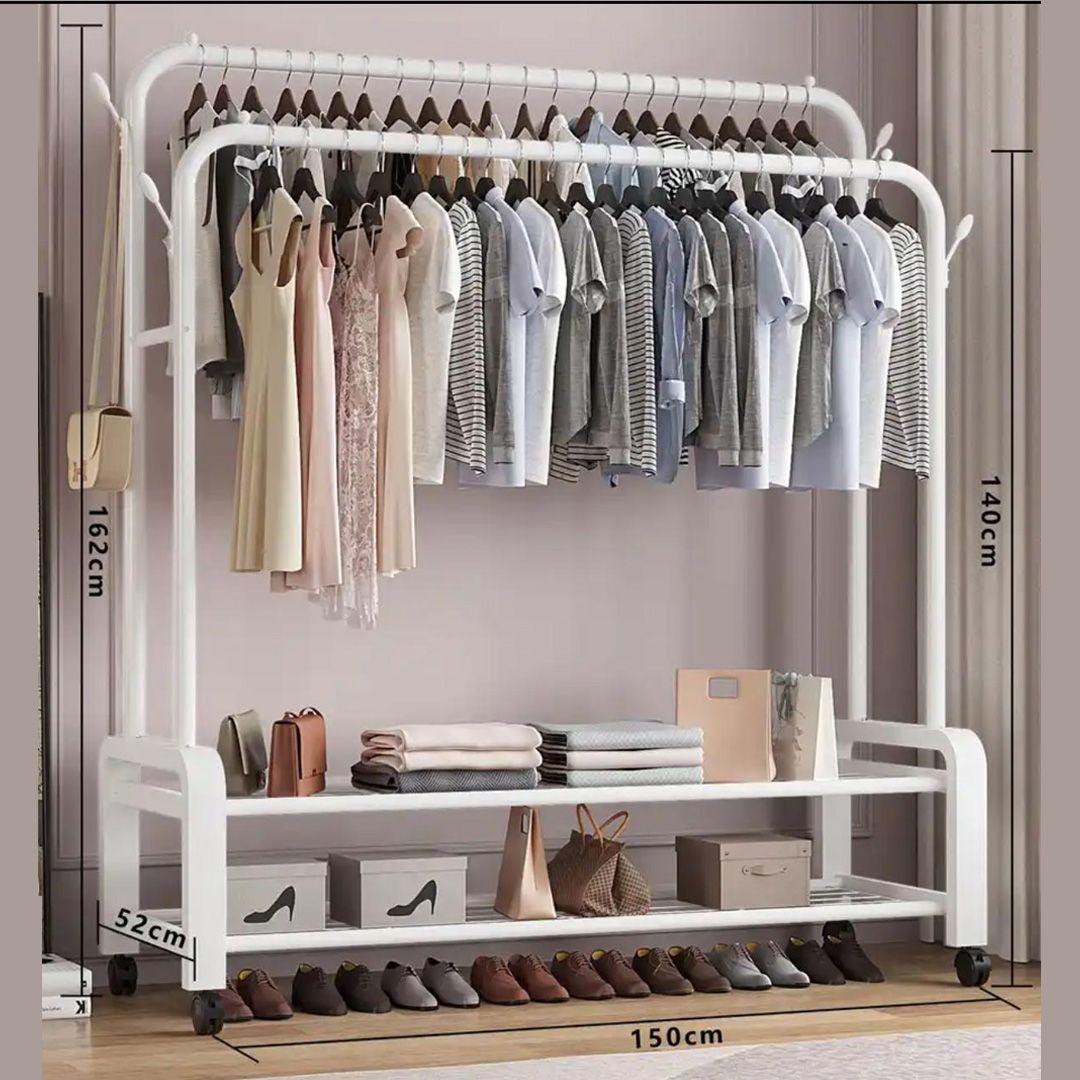 - Stay comfortable and always keep your clothes organized: Never again will you suffer from creases! This rack provides ample space for hanging coats and dresses, with a double bottom shelf that keeps your shoes and bags organized and accessible.