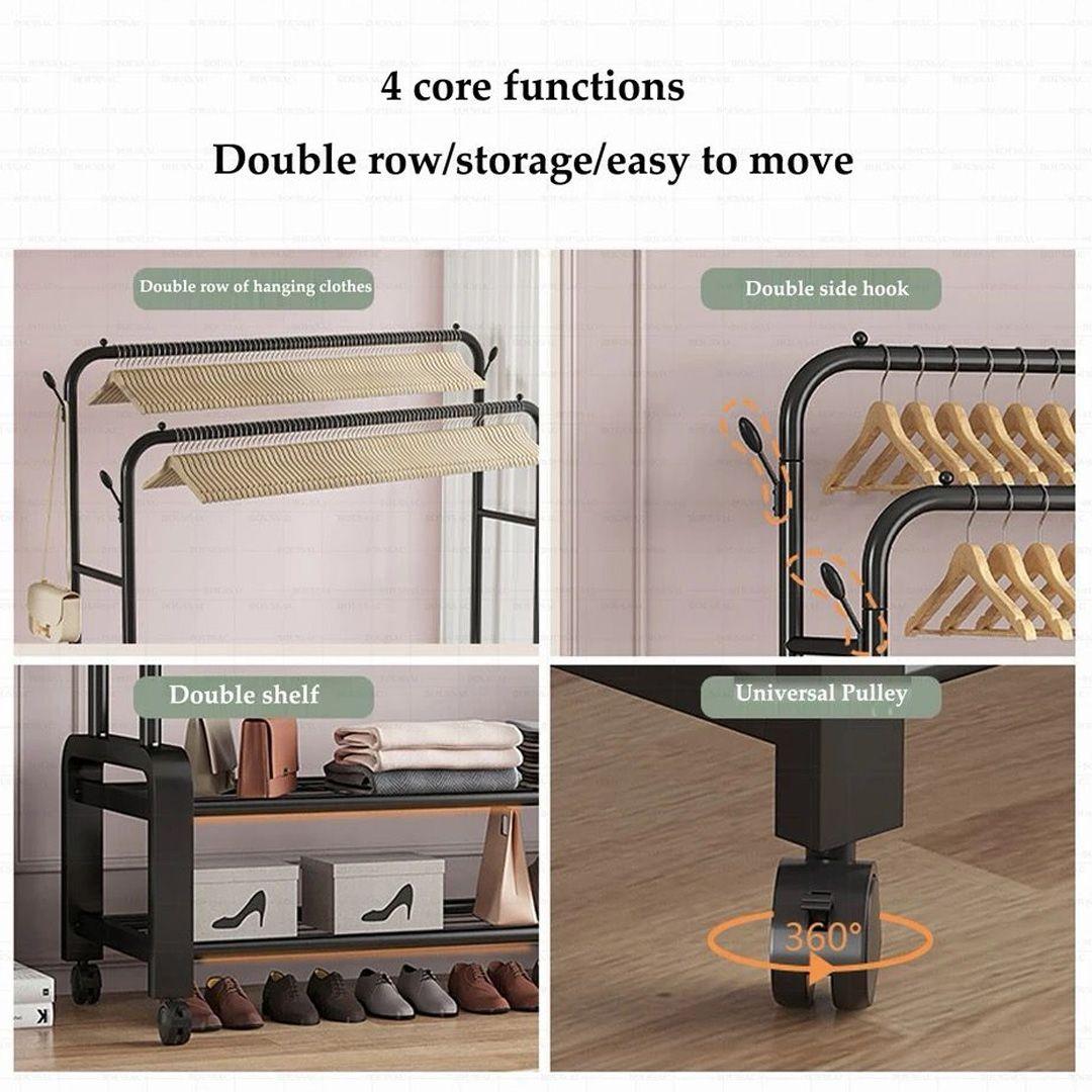 Double Clothes Rail Heavy Duty Metal Coat Stand Garment Rack