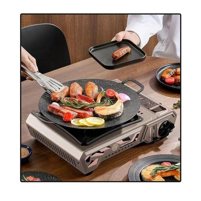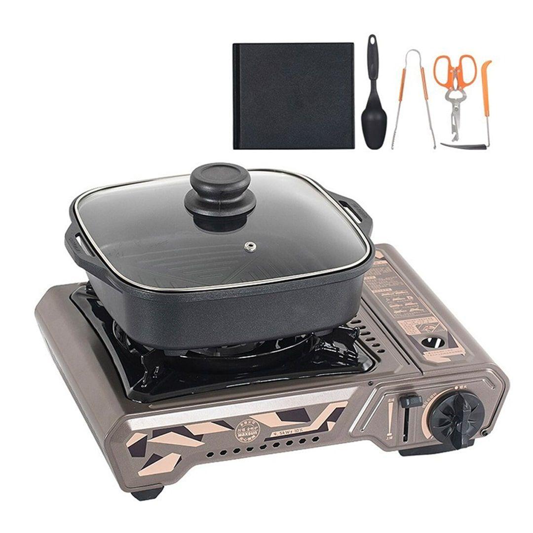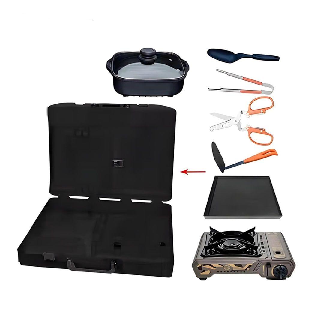 It also comes with a comprehensive set of accessories + including a grill Stirring spoon + barbecue tongs + scissors + flat spatula and cooking pot, to maximize your cooking experience.