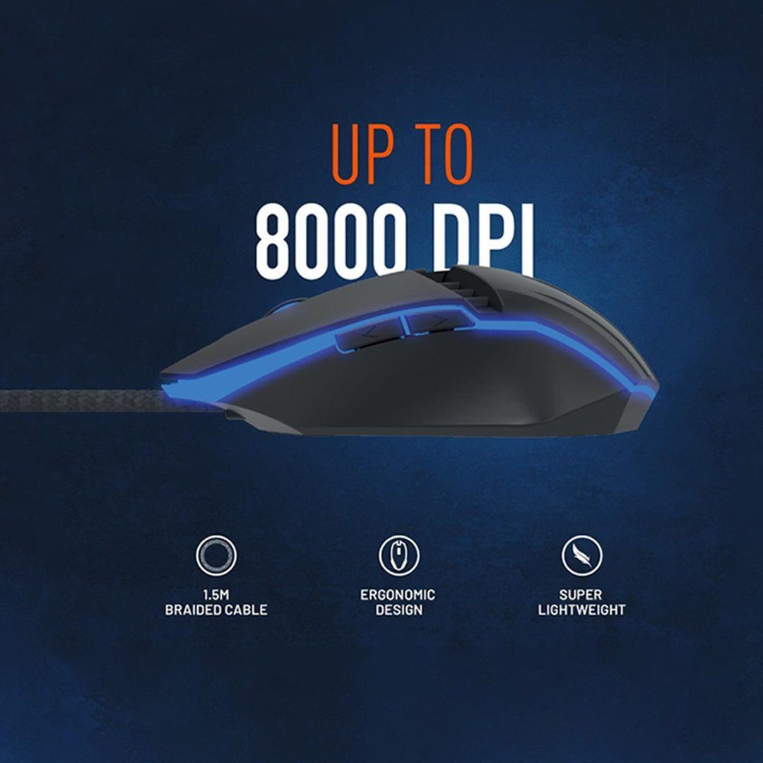 High sensitivity: Porodo mouse is available with a wide sensitivity range from 800 to 8000 DPI, giving you precise control to suit all gaming styles.