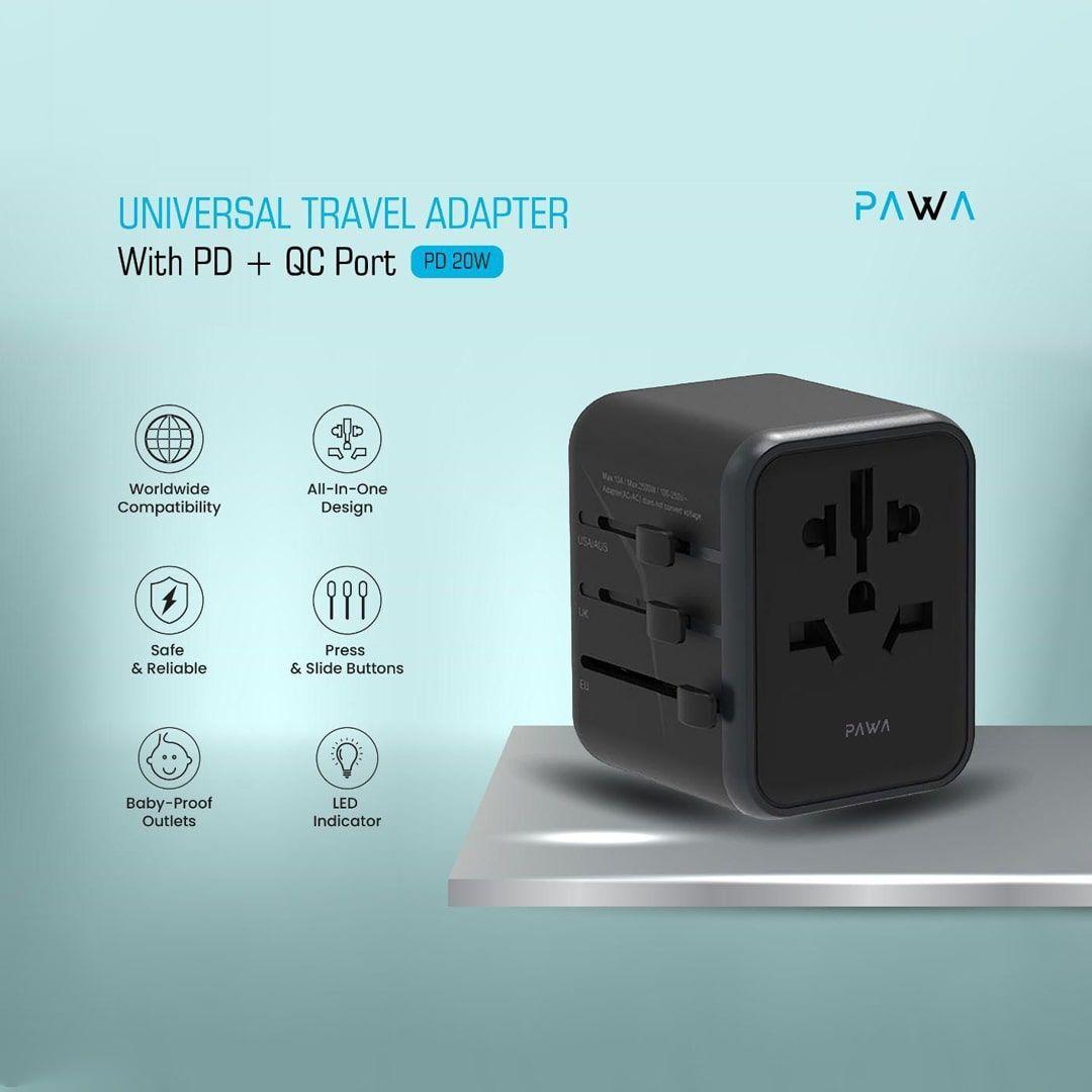 PAWA Universal Travel Adapter with PD 20W + USB QC Port