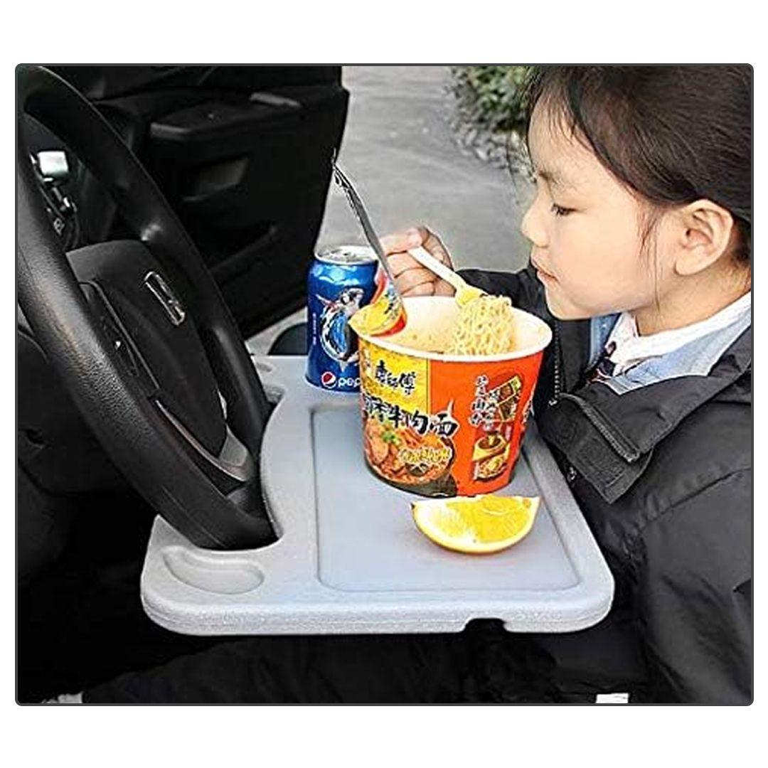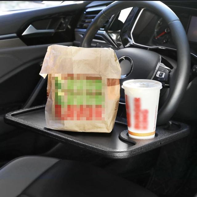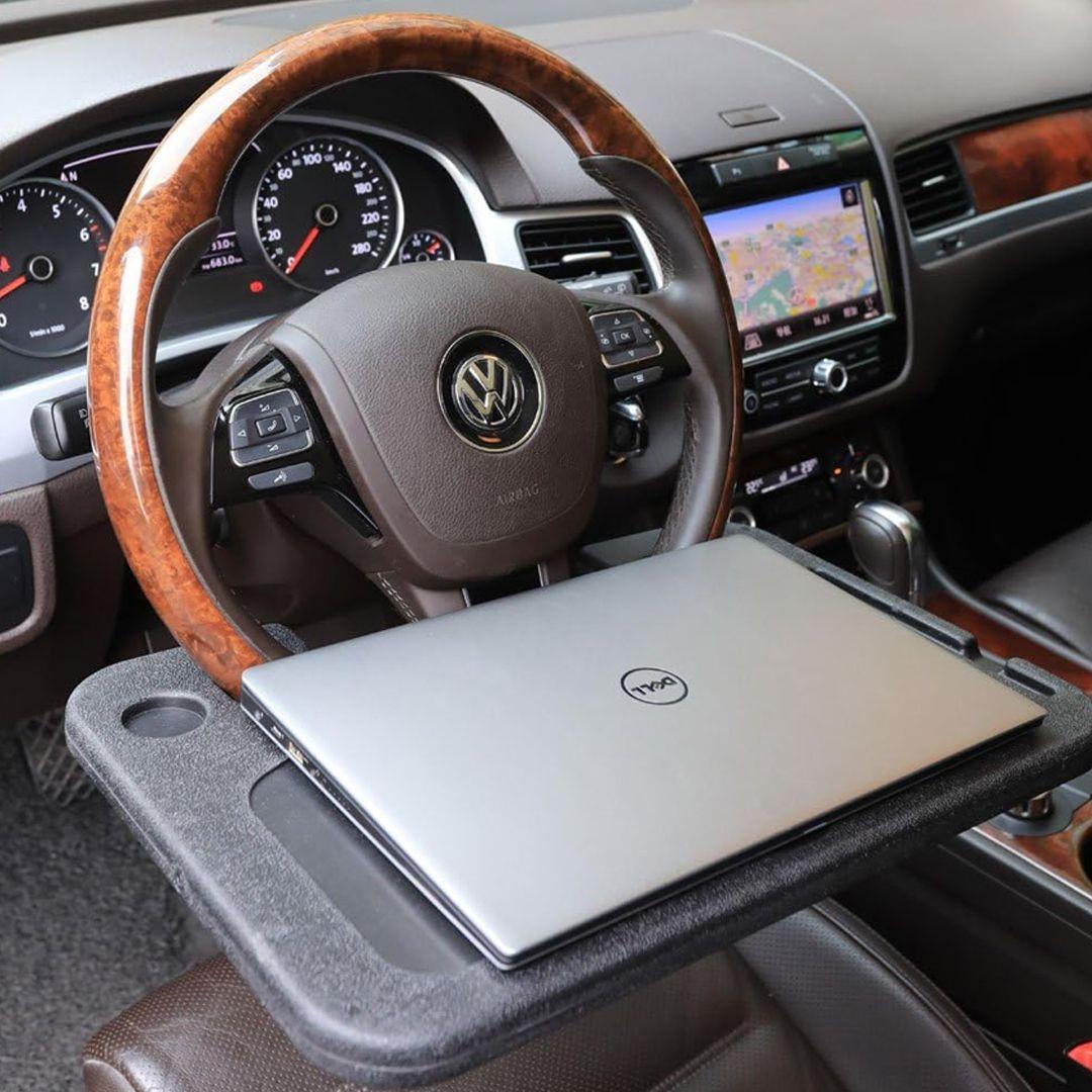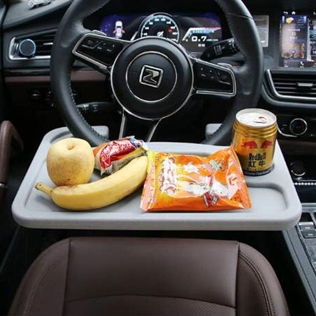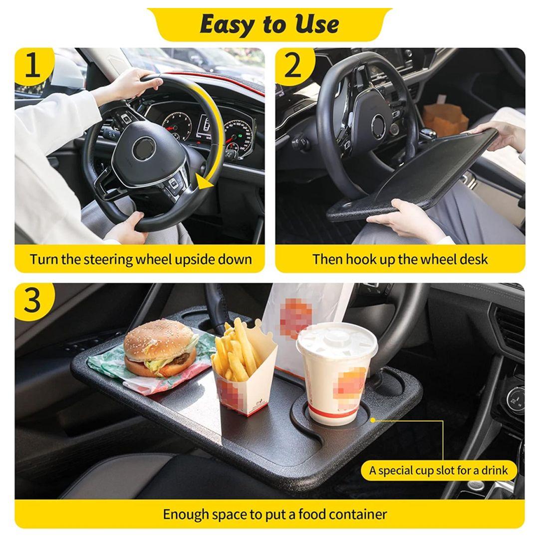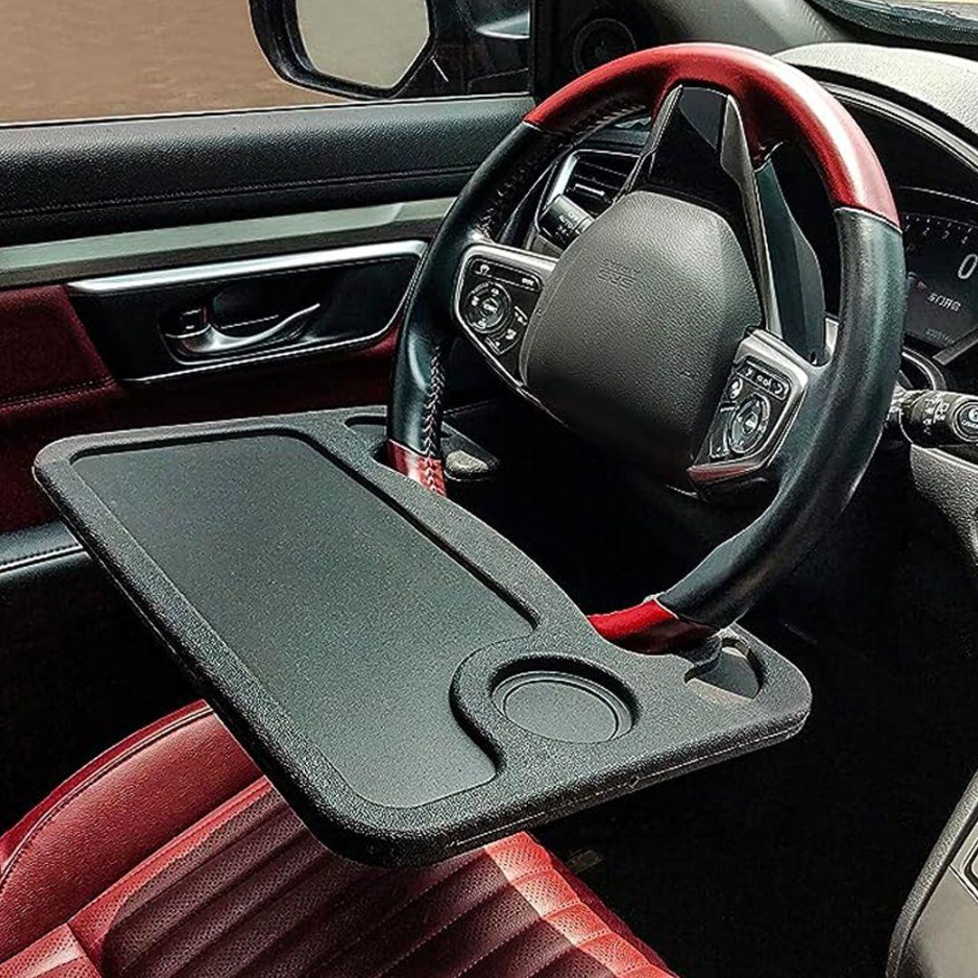This smart steering wheel table mounts right onto your car's steering wheel, giving you a comfortable space to eat, drink, or even use your laptop — like having a mini office in your car!