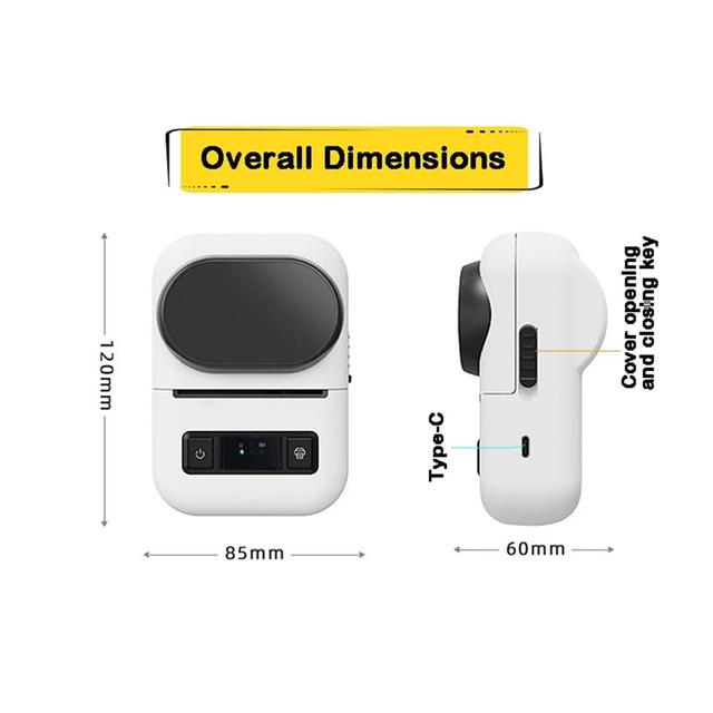 - Printer Size: 120 × 85 × 60 mm