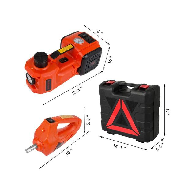 Includes the jack, electric impact wrench, and all essential accessories—organized in a portable, easy-to-carry case.