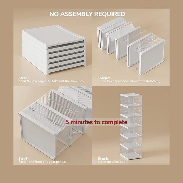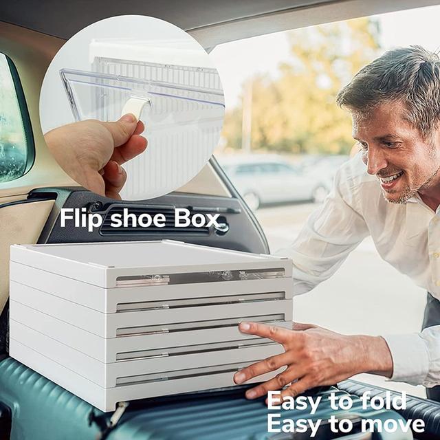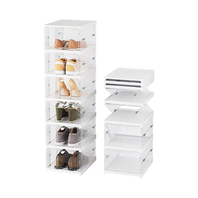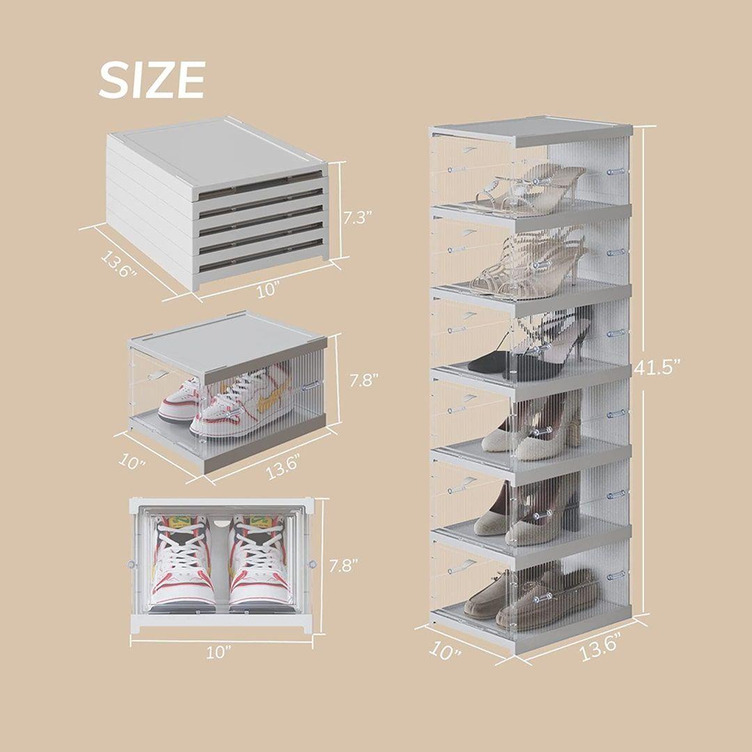 Foldable Shoe Storage Boxes with Lids 6 layers Clear Stackable Shoes Organizer