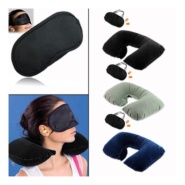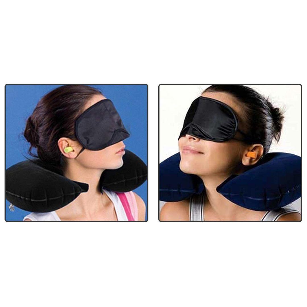 Multifunctional Travel Trio Set (Neck Rest Sleeping Pillow + Sleeping Eye Mask + Noise Isolating Earplugs)