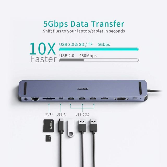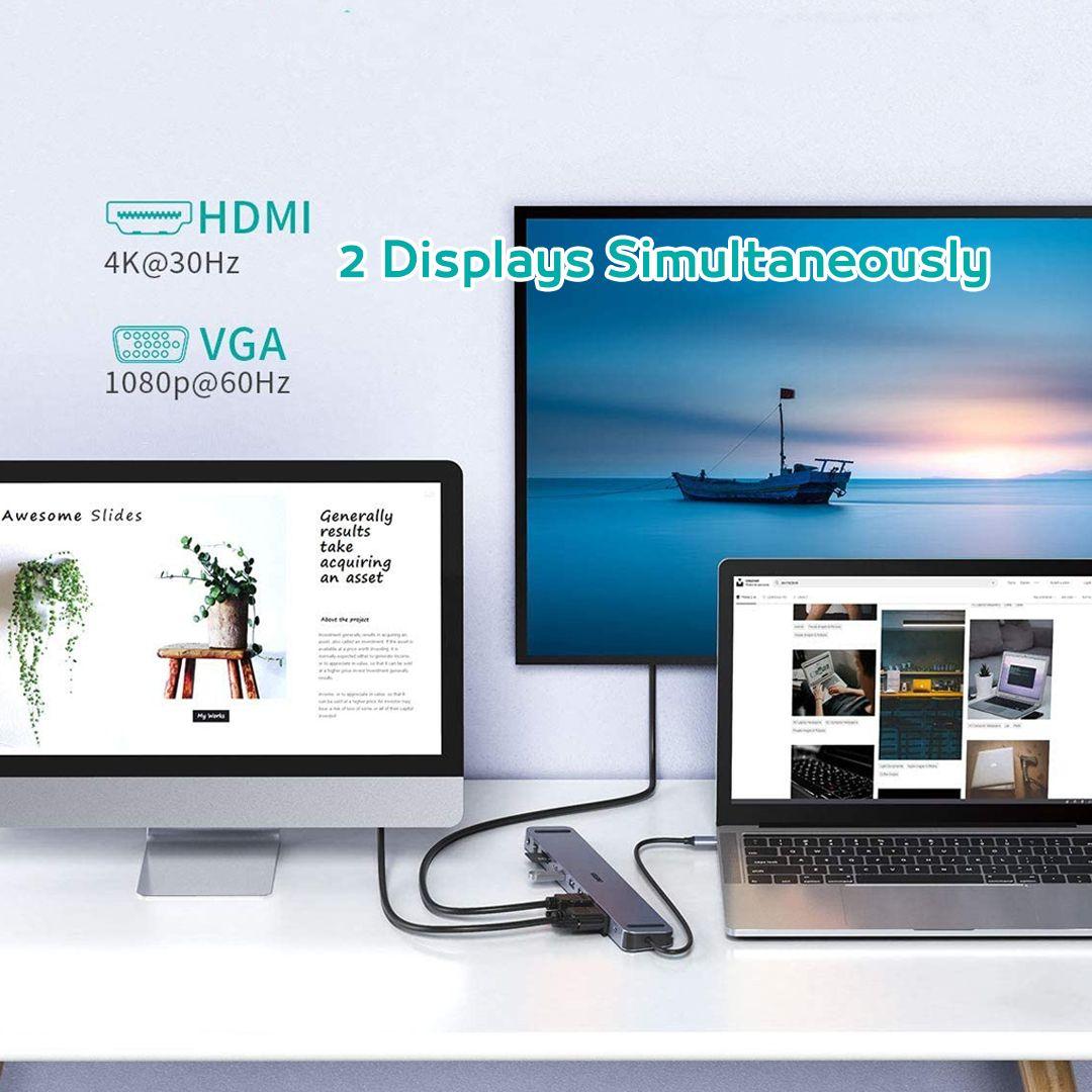 - Connect all your devices at once: Comes with 4 × USB 3.0 ports, 1 × USB-C PD for charging, HDMI 4K, VGA 1080p, fast RJ45 Ethernet, 2-in-1 audio & microphone port, plus SD & Micro SD card slots. You can connect everything you need directly from your laptop.