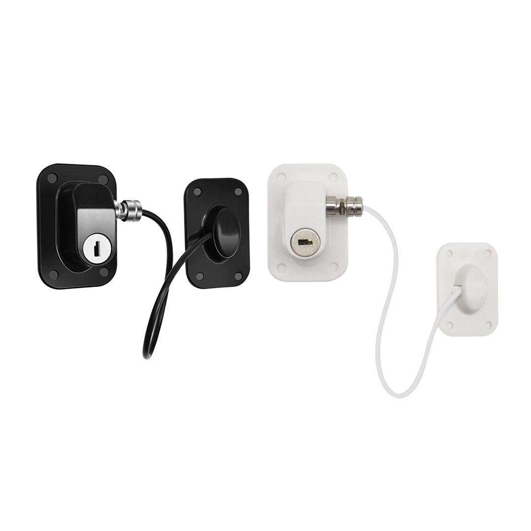 The lock has a strong, weight-bearing adhesive and comes with two keys to unlock it—inaccessible to children.