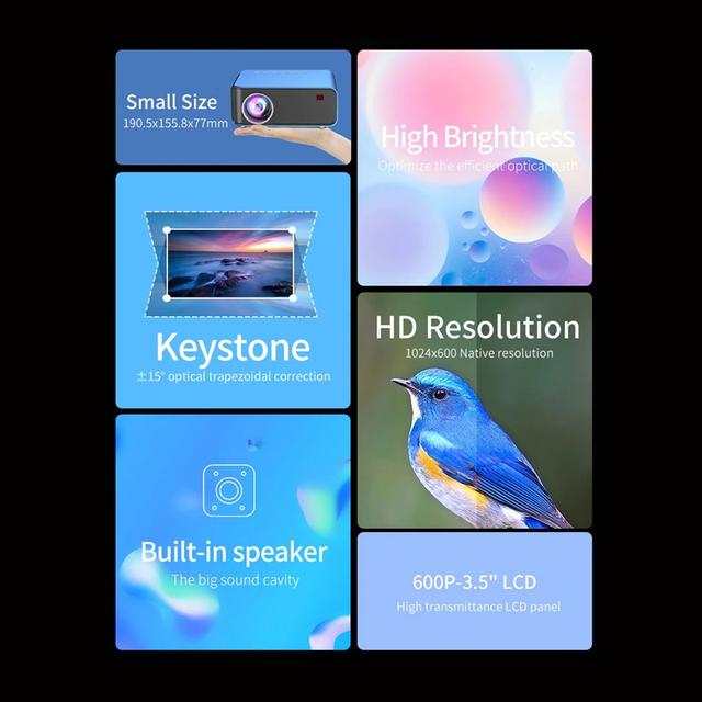 【HD】 With high definition, the projector provides clear and detailed high-definition images. Ensure the best video experience.
