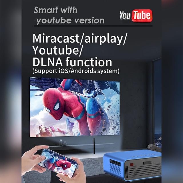 【You Tube App & SURROUND SPEAKER】The projector has a You Tube app. After you are connected to WiFi, you can browse You Tube content. (Only You Tube app is included. No other apps can be downloaded.). Inspired by the construction, the projector has restored every detail of the sound effects to let you enjoy the sounds of pleasure in different scenes.