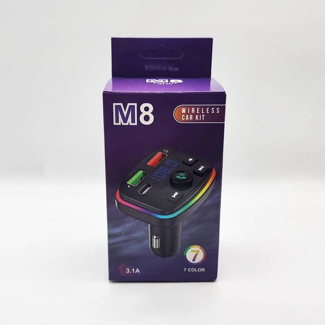 M8 Wireless Car Kit with 2 USB Ports and a Type-C Port with Cool LED Light