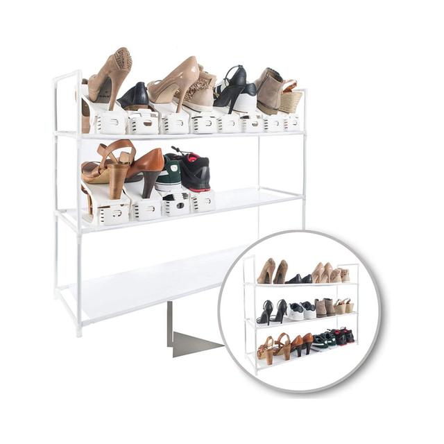 This smart shoe organizer lets you store twice as many shoes in the same space, so you can say goodbye to clutter and enjoy a tidy, stress-free space.