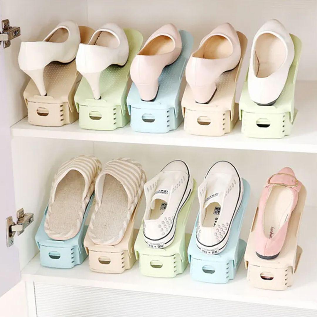 High-Quality Plastic 2-Tier Adjustable Shoe Rack and Organizer (4 Pcs set)