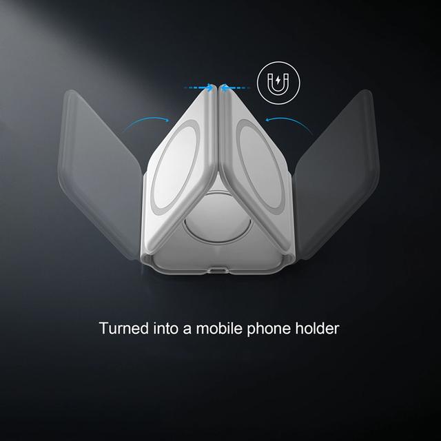 - With its foldable design, you can use it as a triple charging station for 3 devices, or fold it down into a compact single-device charger — saving space and making it super portable.