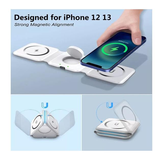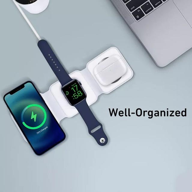- Compatibility: iWatch (Series 1–6) + AirPods + iPhone 12 and later with magnetic alignment + all Qi-enabled devices
