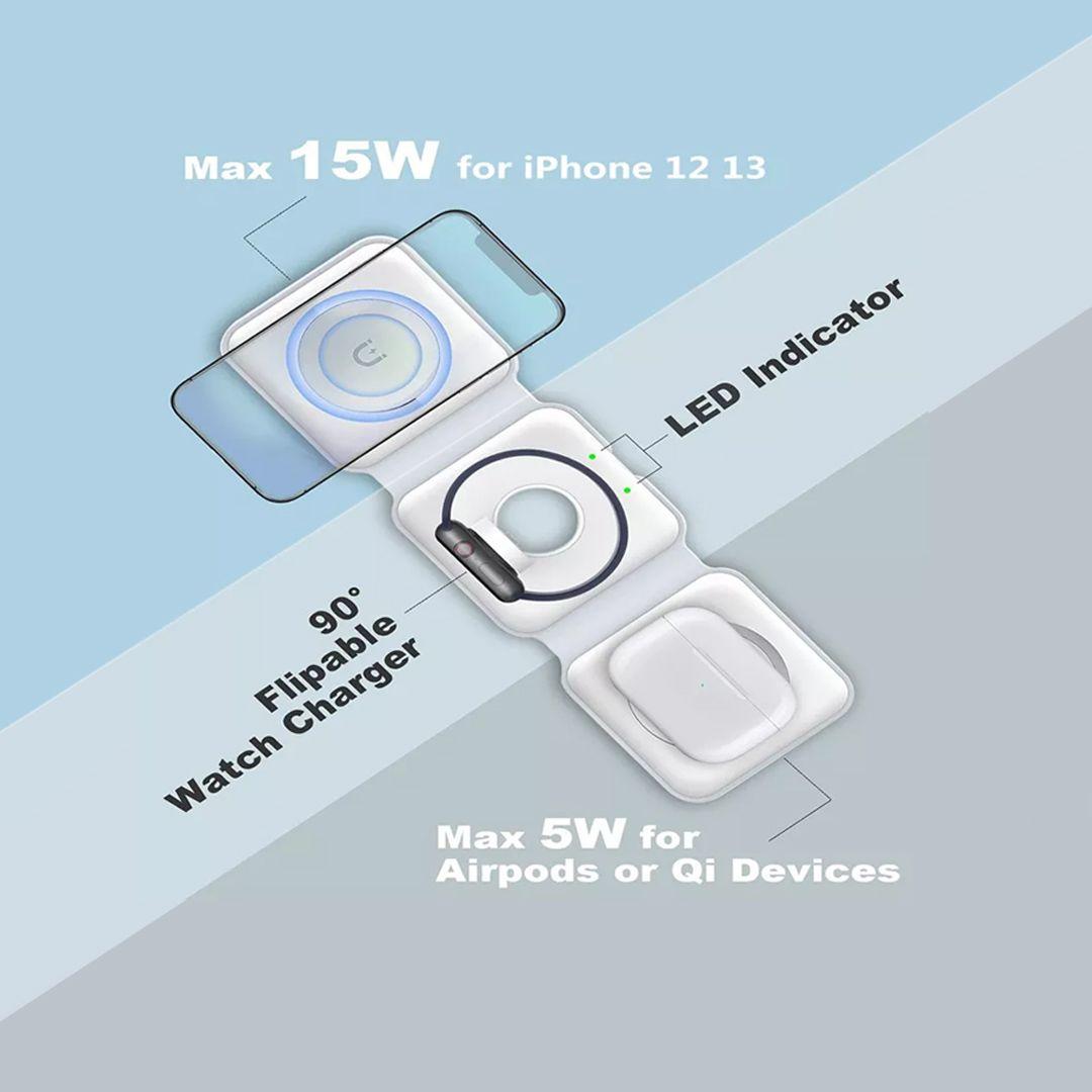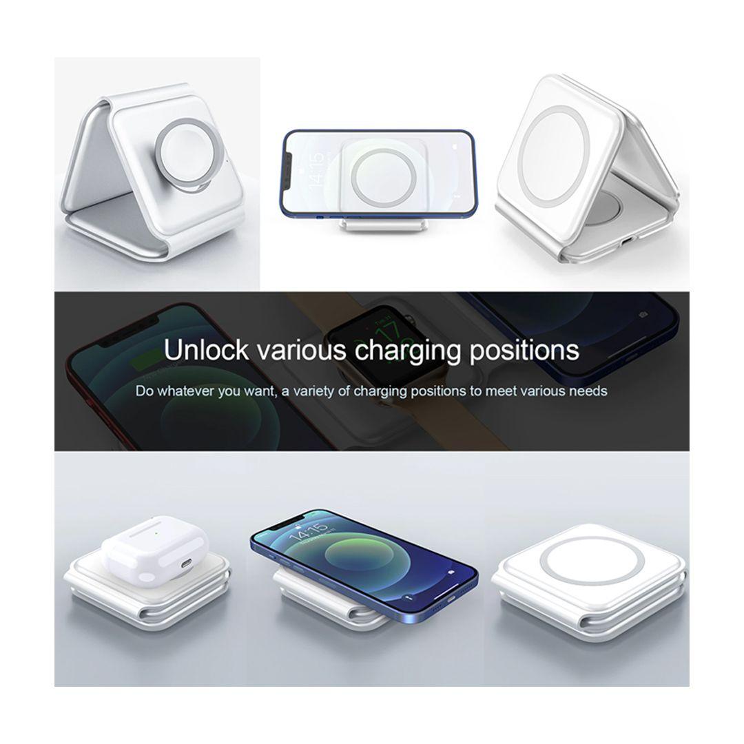 Multifunctional 3-in-1 15W Foldable Wireless Magnetic Charging Dock