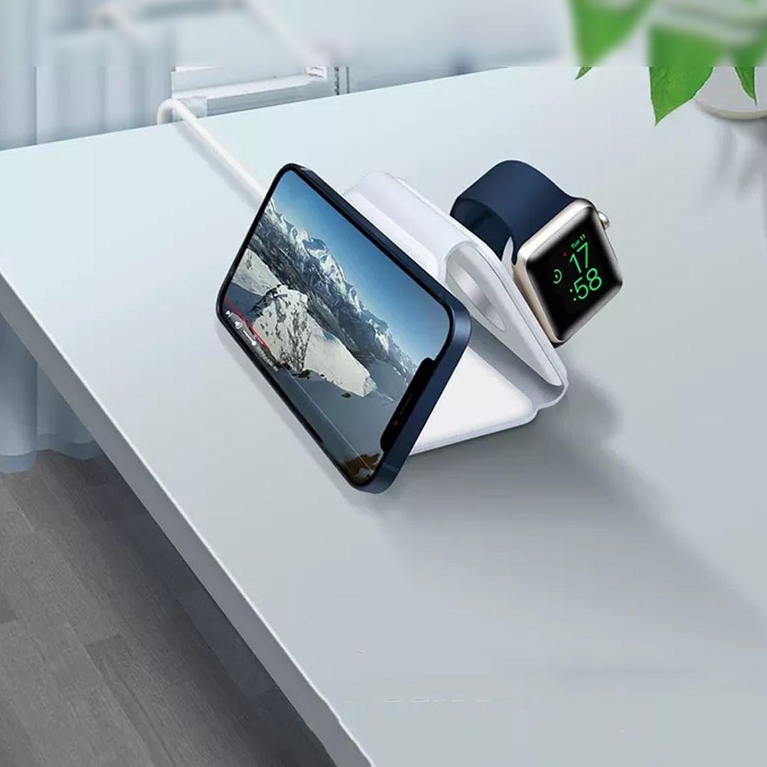 This smart charging dock gives you peace of mind by charging your phone, watch, and earbuds all at once, replacing three chargers and keeping your desk or room neat and organized.