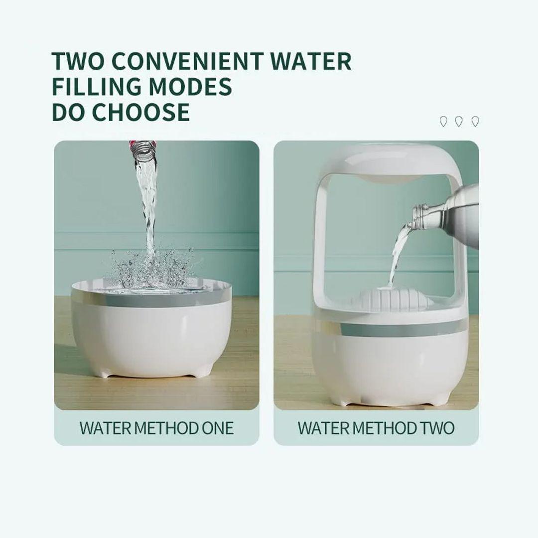 The sound of flowing water paired with anti-gravity droplets creates a spa-like atmosphere that melts away stress.