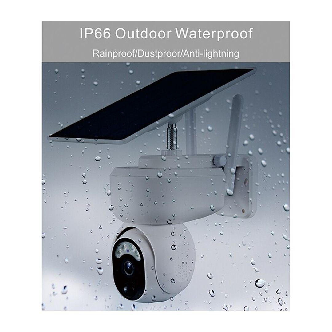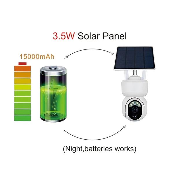 Powered entirely by solar energy, with built-in 15,000mAh rechargeable batteries that keep the camera running even at night or on cloudy days.