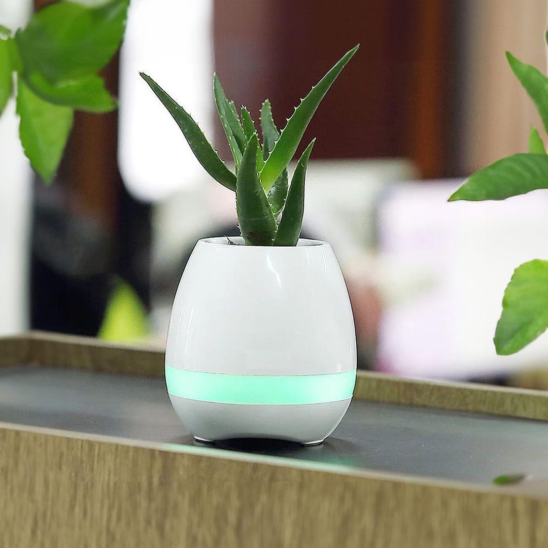 Plant Pot with Rechargeable Wireless Bluetooth Speaker and LED Touch Night Light