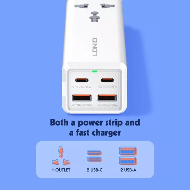 LDNIO HUB (SC1418) 2500W DESKTOP POWER STRIP 2TYPE-C + 2USB 65W