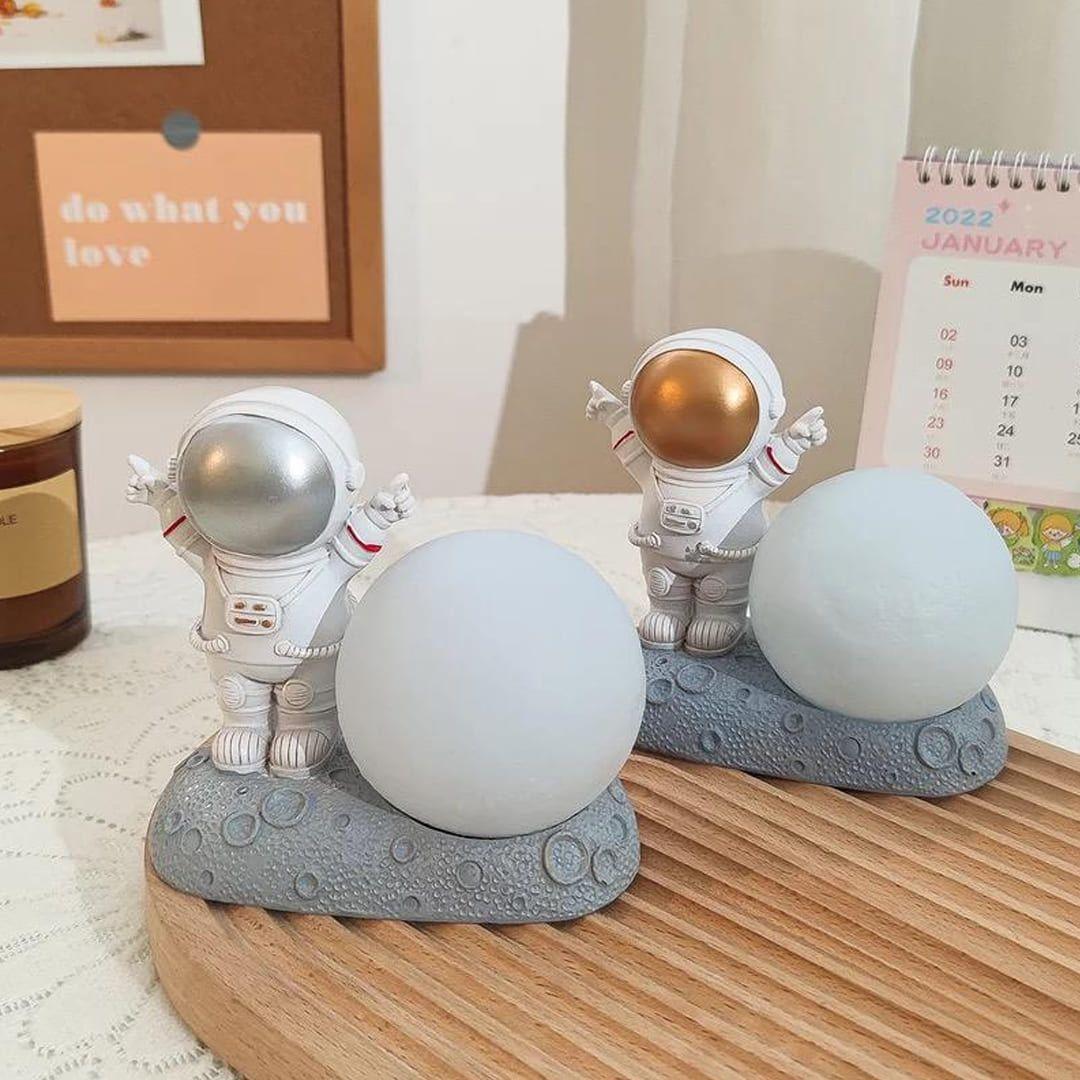 Astronaut lamps accompanied by the moon, are ideal to use as a night light in children's rooms or to illuminate and decorate any room.