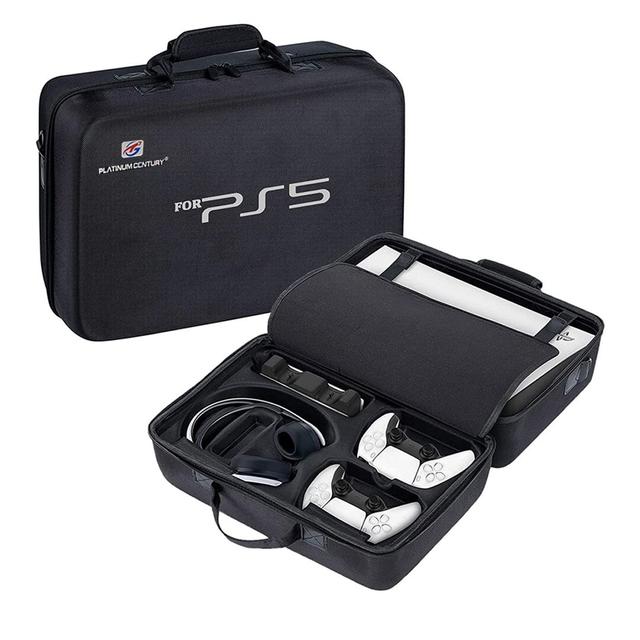 【Perfect Design】Our travel bag is specially designed for PS5. The interior is customized to fit playstation 5 console/ digital, two dualsense controllers, Dual charger, AC power cord, USB cable, headset, game disc or other accessories you need, this for PS5 handbag can Hold them perfectly.