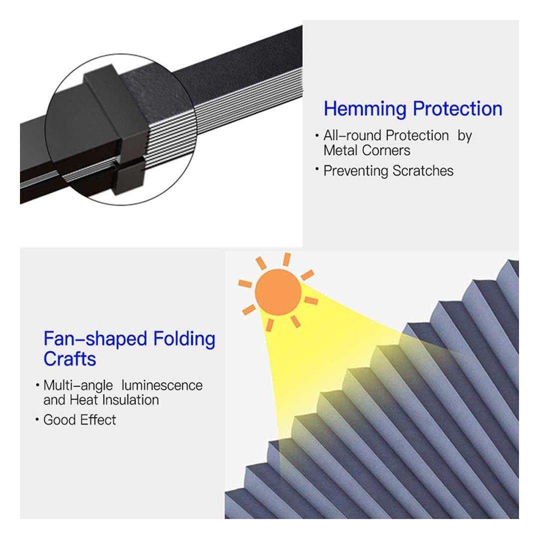 The reflective aluminum material blocks the sun's heat and 98% of UV rays, keeping the car's temperature moderate and protecting the interior trim from damage.