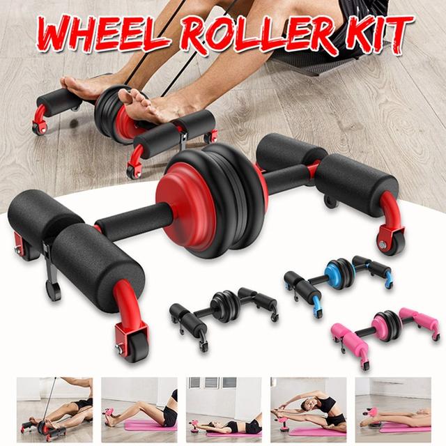 Multifunctional Abdominal Wheel Abdominal Muscle Training at Home with Knee Pad and Resistance Bands