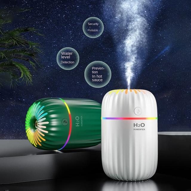 - Made from durable materials, available in white, pink, and green colors, with a 300 ml capacity that offers about 6 hours of continuous mist.