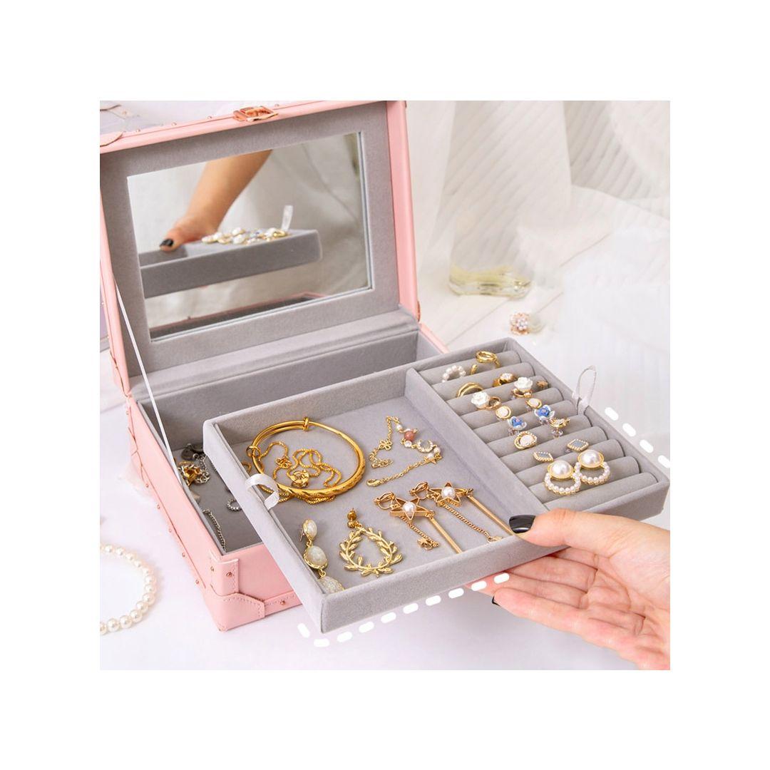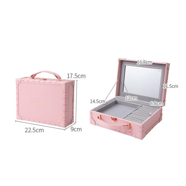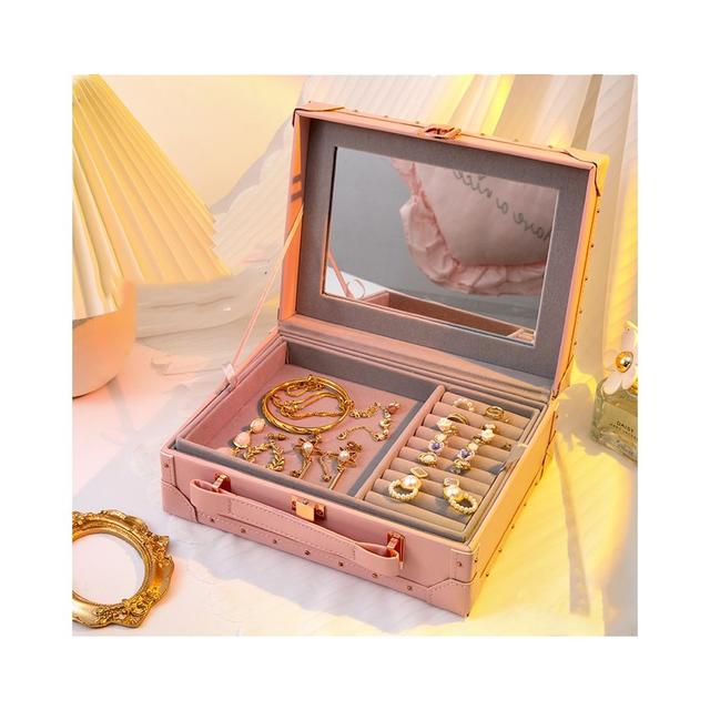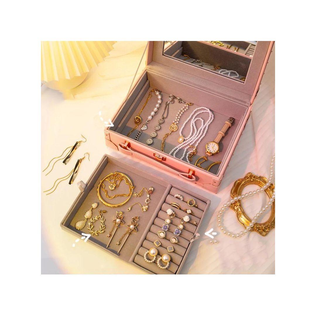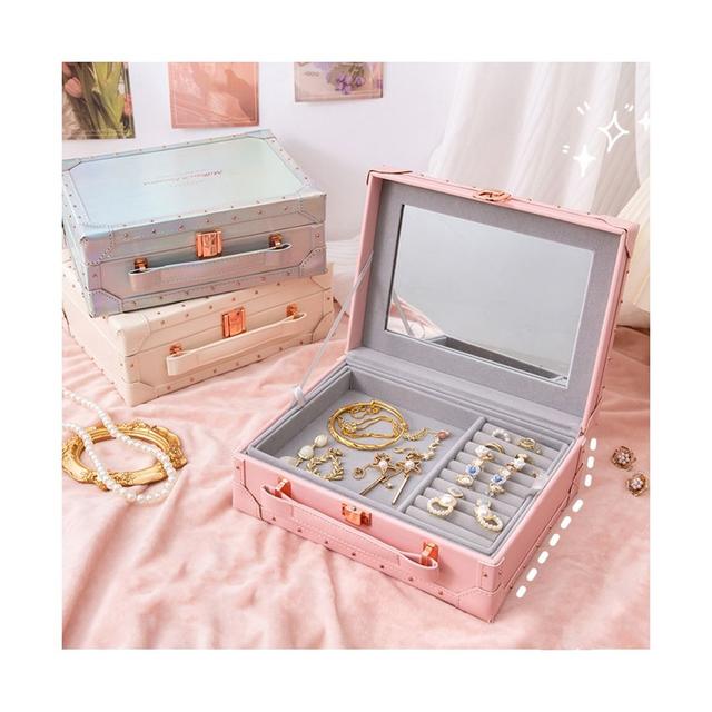 Jewelry Storage Box Double-Layer Hair Accessories Jewelry Organizer with Mirror Portable Leather Storage Jewelry Case