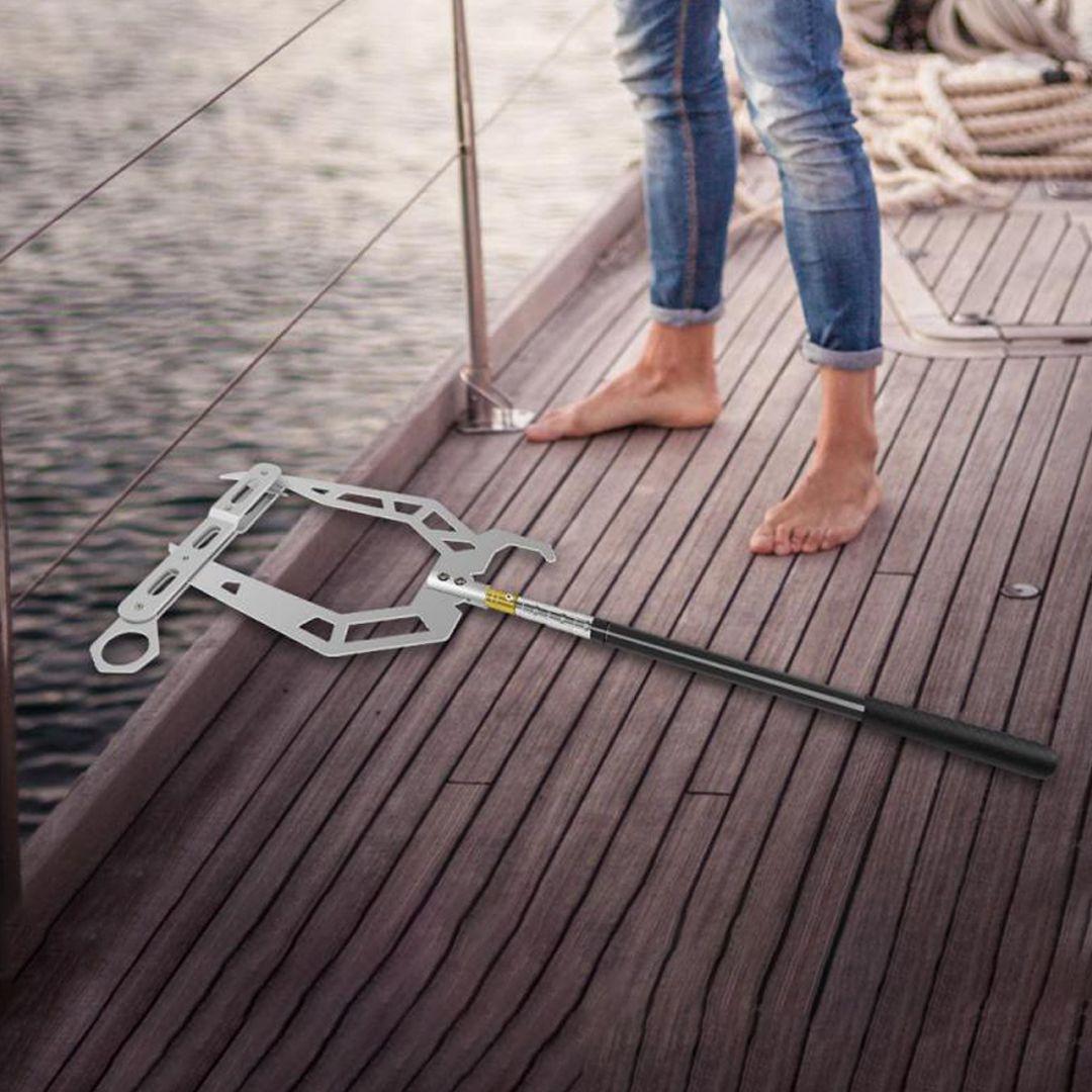 Want to pull your boat easily and comfortably without any hassle? This multi-purpose boat hook with a long handle helps you extend your boat rope over a long distance and pull your boat ashore smoothly and securely.