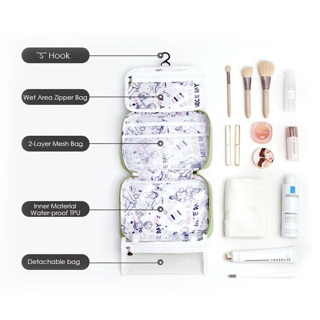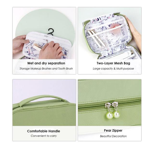 Portable Cosmetic Bag Travel Wash Bag Hanging Organizer Bag Foldable Toiletry Bathroom Bag