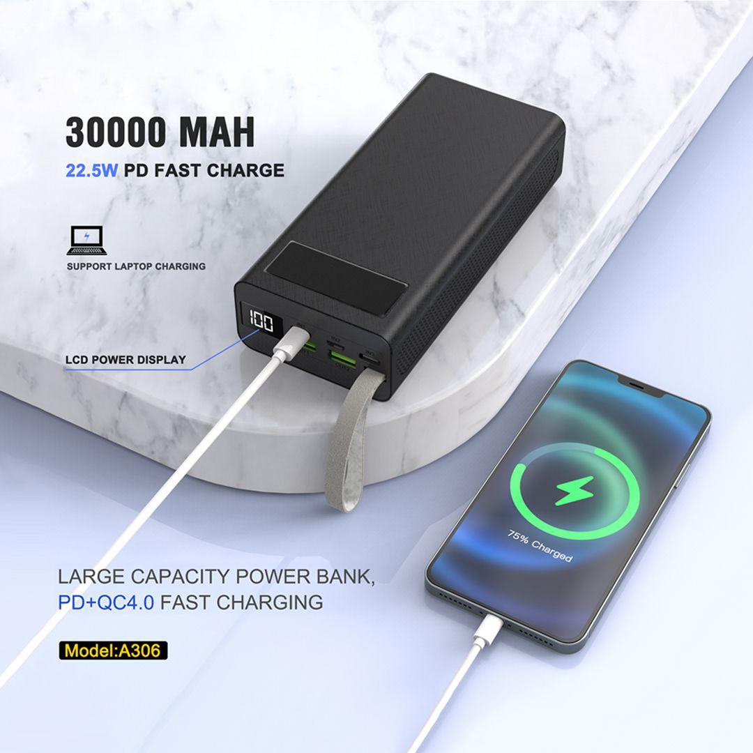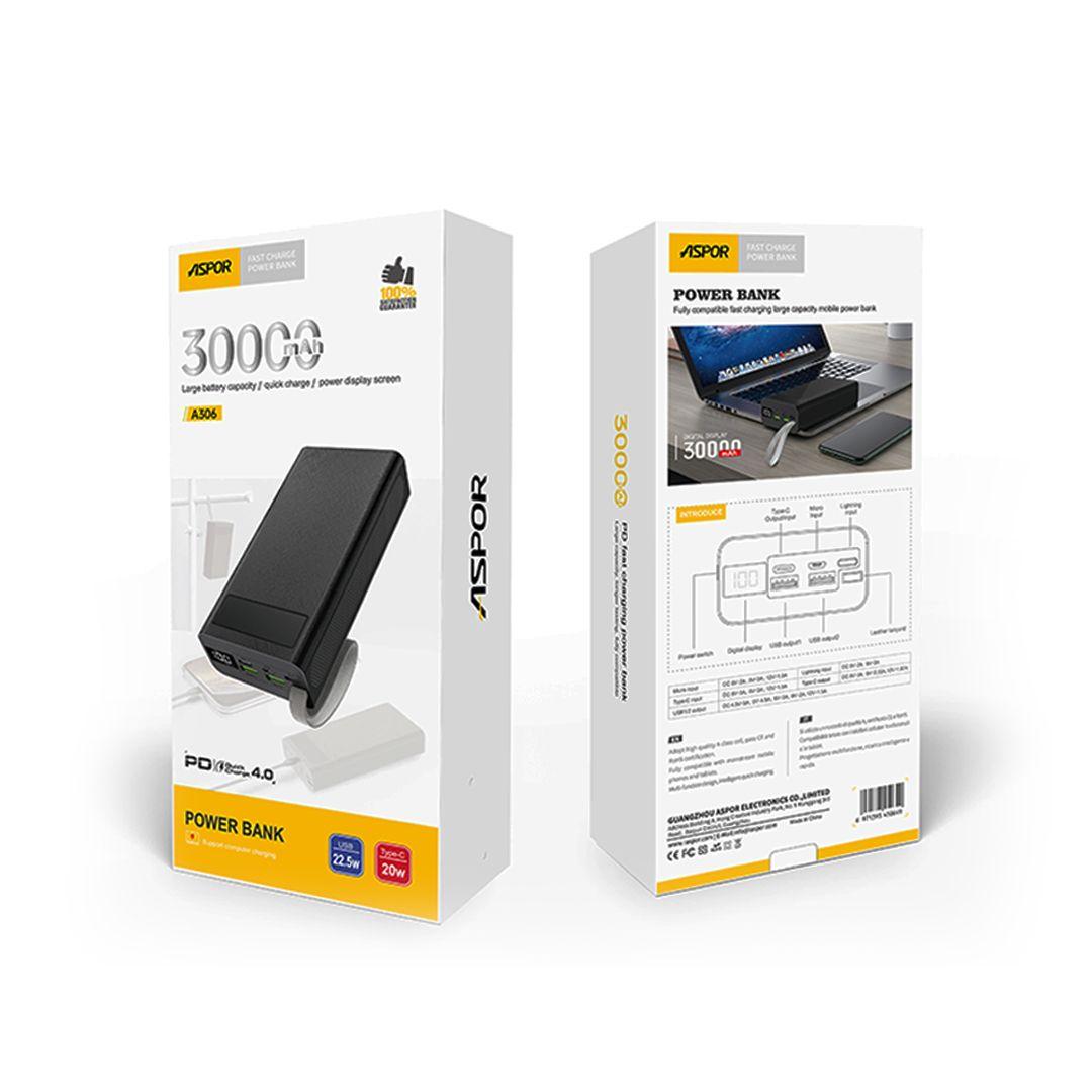 ASPOR A306 30000mAh Big Capacity Power Bank with LCD Display PD + QC 4.0 Fast Charging