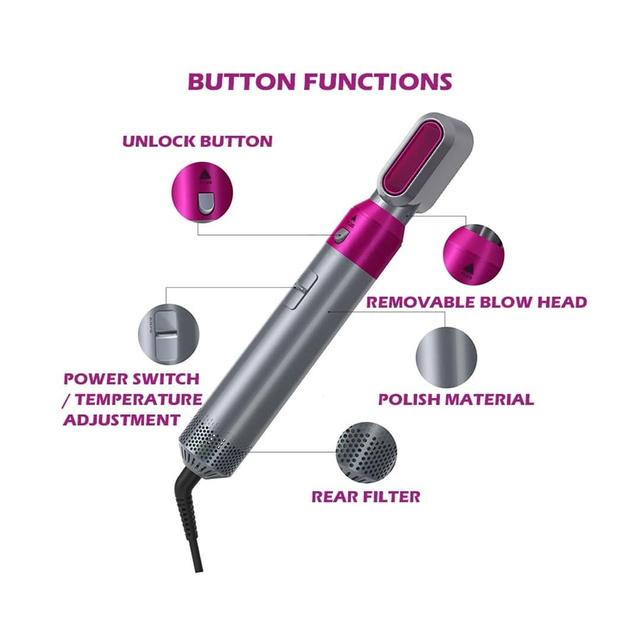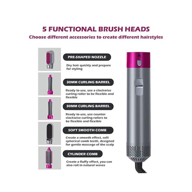 (Hair Styler Set) 5-In-1 Hot Air Brush Hair Curler Set Description