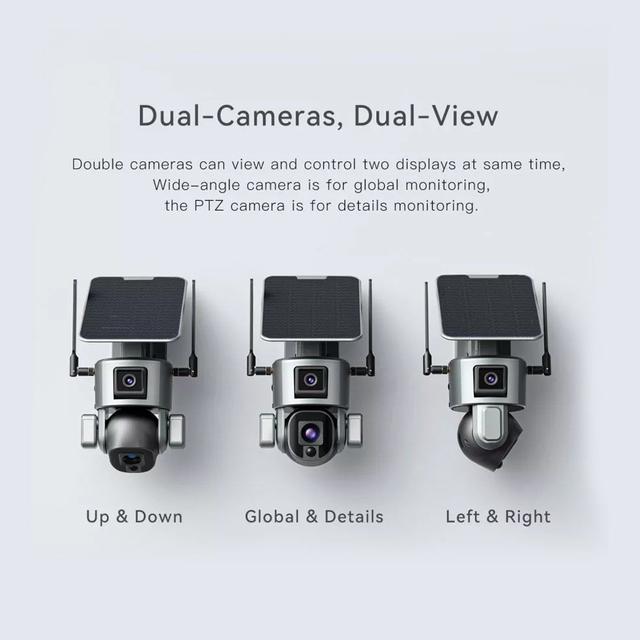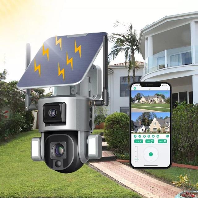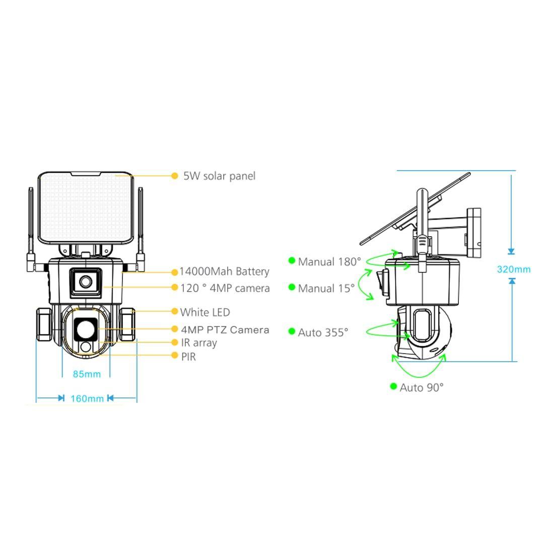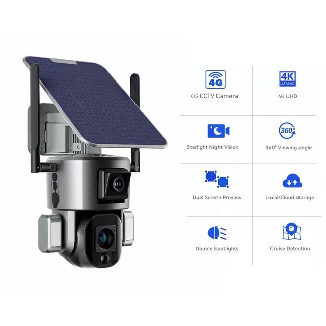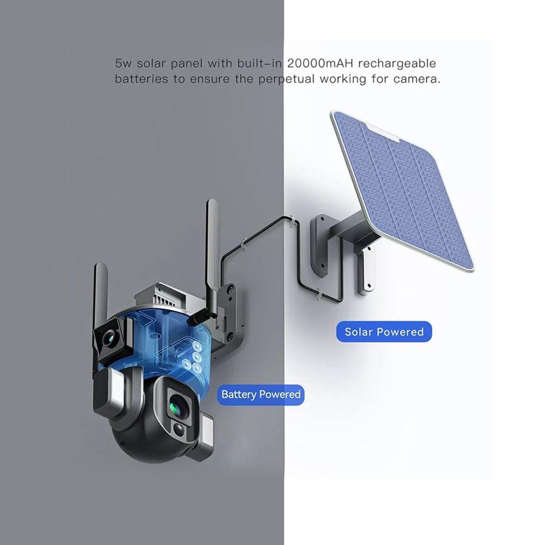 CCTV Camera Solar Camera Security PTZ Dual Camera Auto Tracking Human Detection Solar Panel 4G Camera